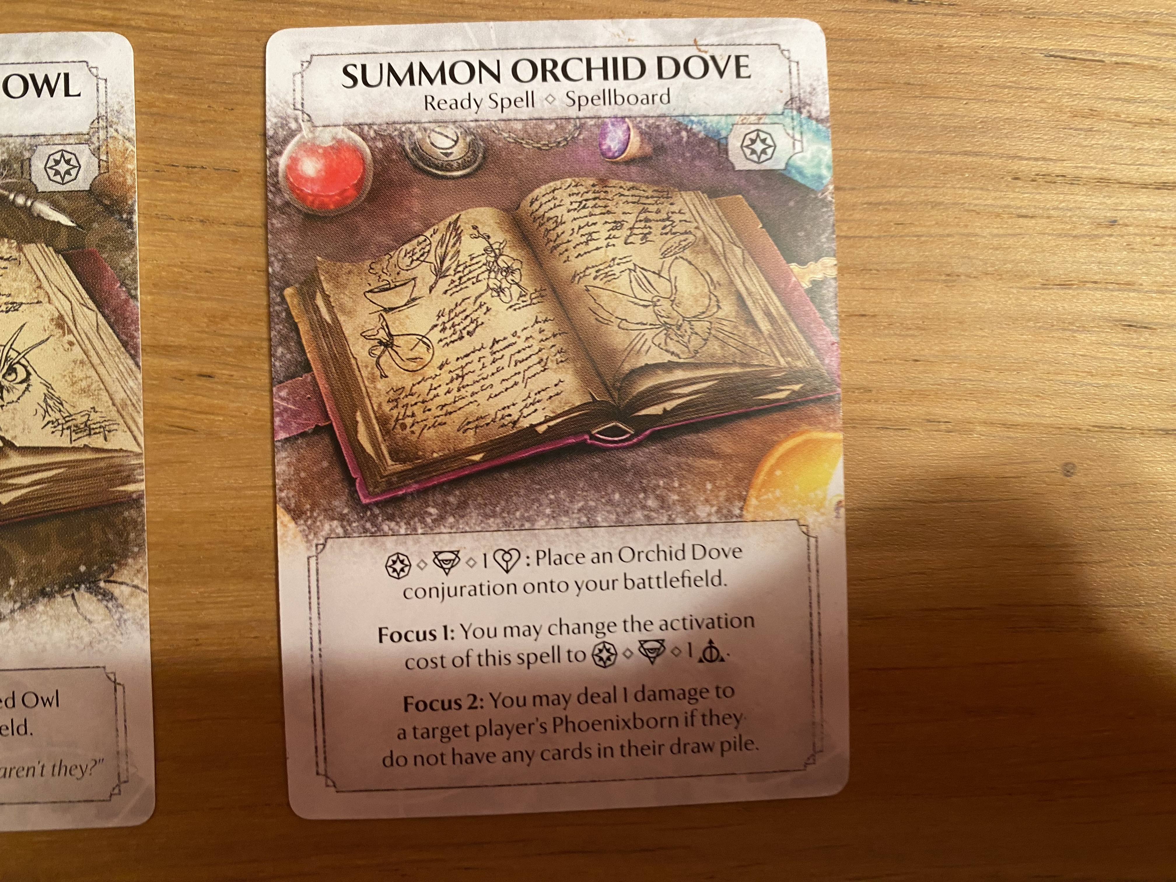 Retrieve ‘Summon Orchid dove’ from discard to hand (not played, just showing for reference)