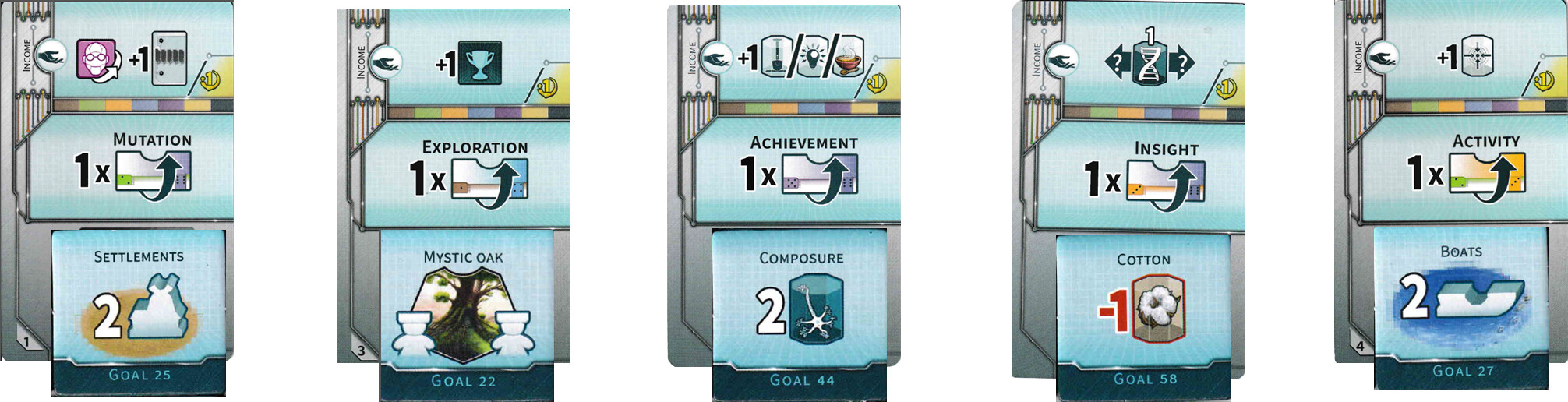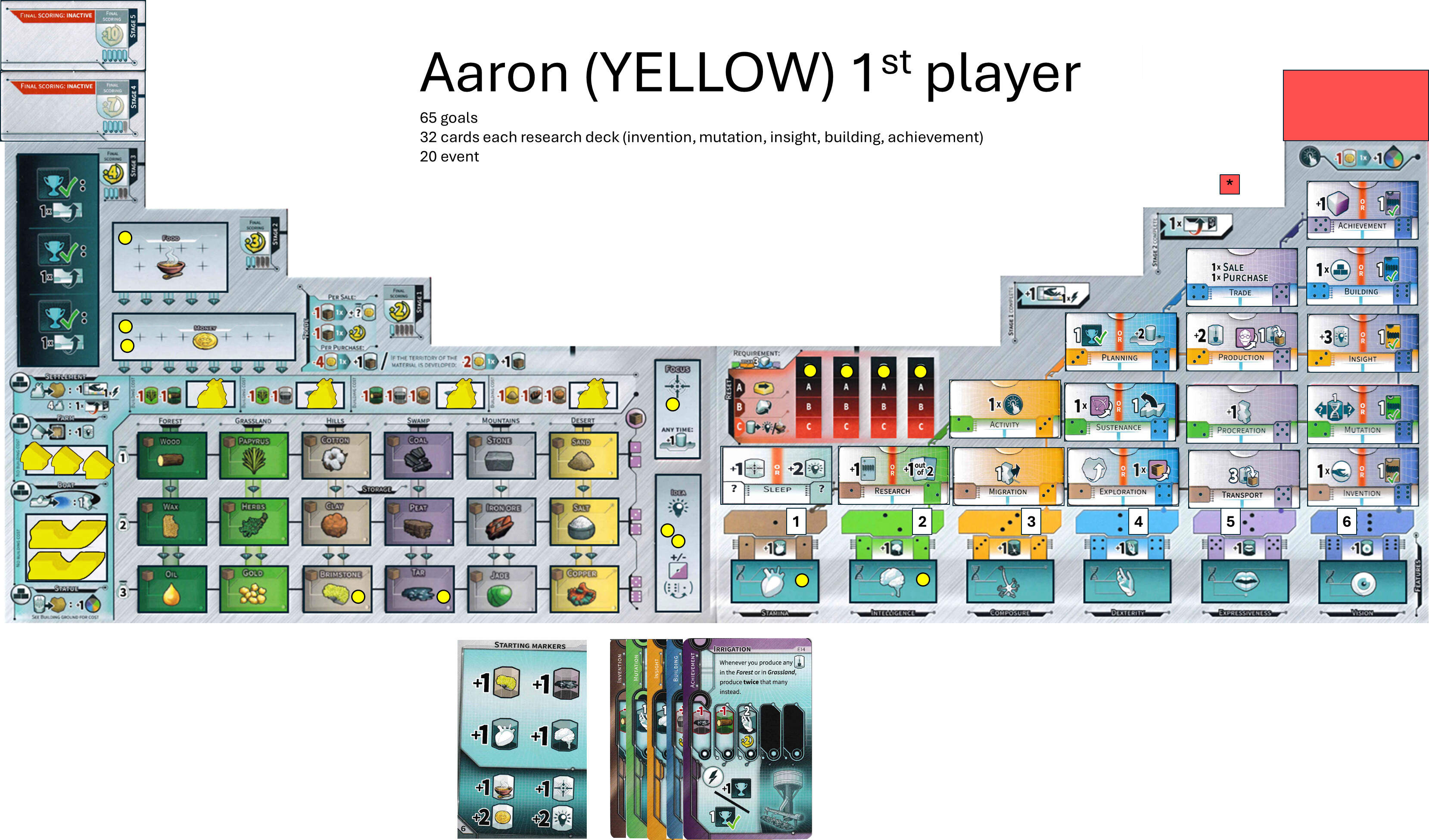 After everyone has chosen their cards, we will go into choosing starting chip cards (with their unique goal tokens on them). Last player will choose first.