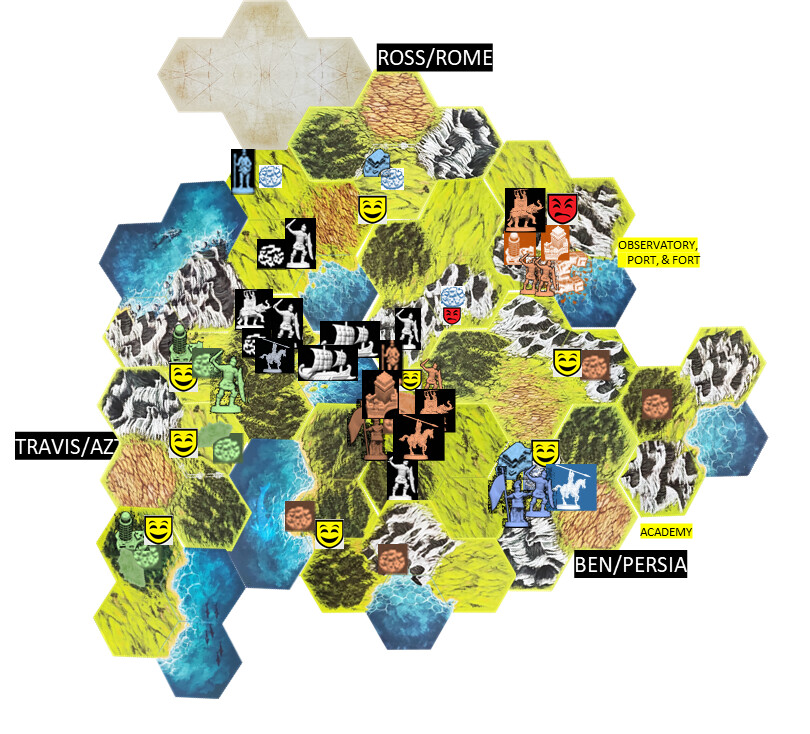 - Move: road move leader army to retake my start city (0g, to 3g if successful).
