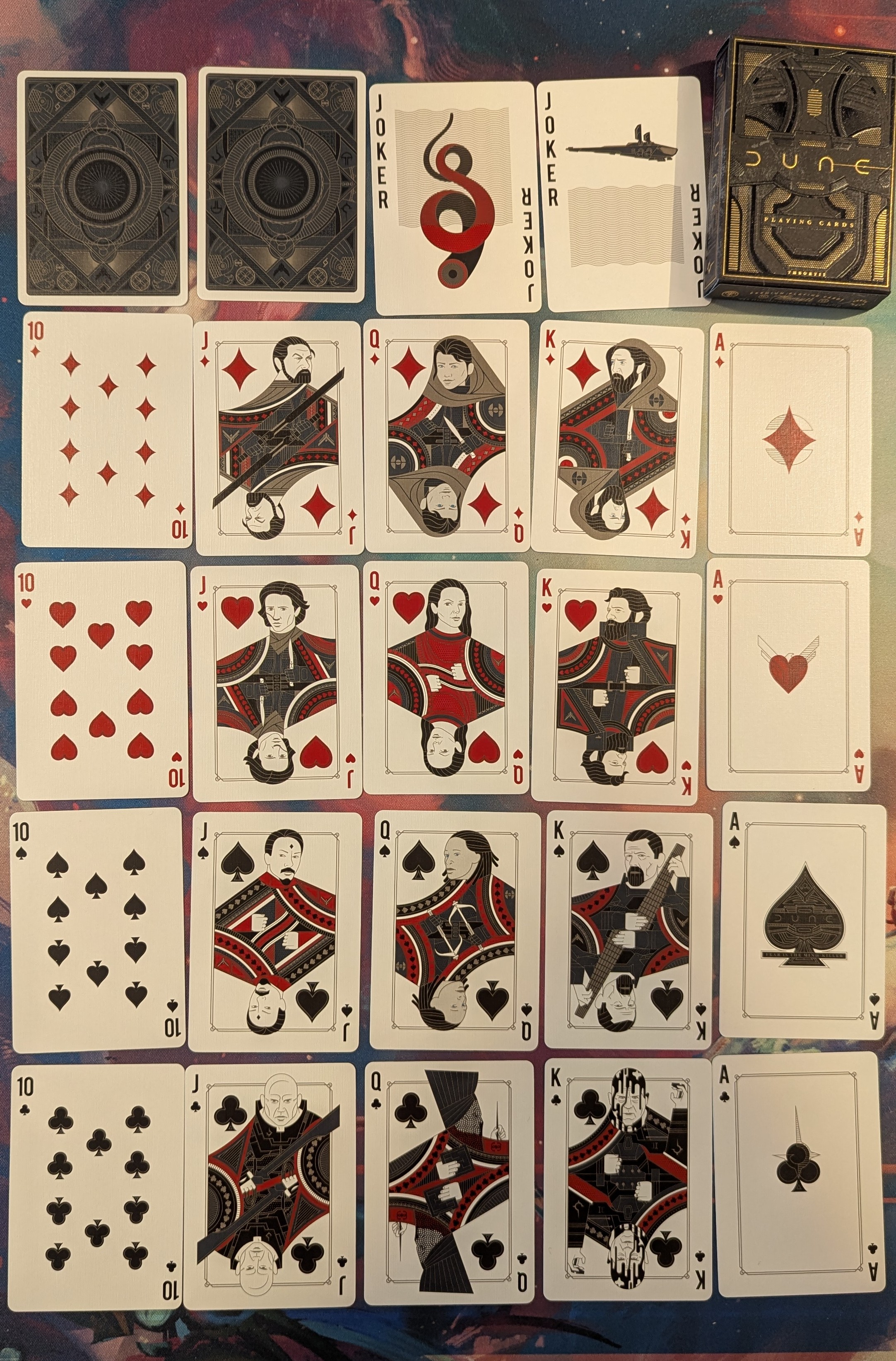 After an immensely long wait out Corrupted Decks from a Wyrmwood Kickstarter arrived. They are very beautiful and great quality but the wait and the price… make Wyrmwood hard to recommend. We have some of their dice as well. Great product but very expensive as well.