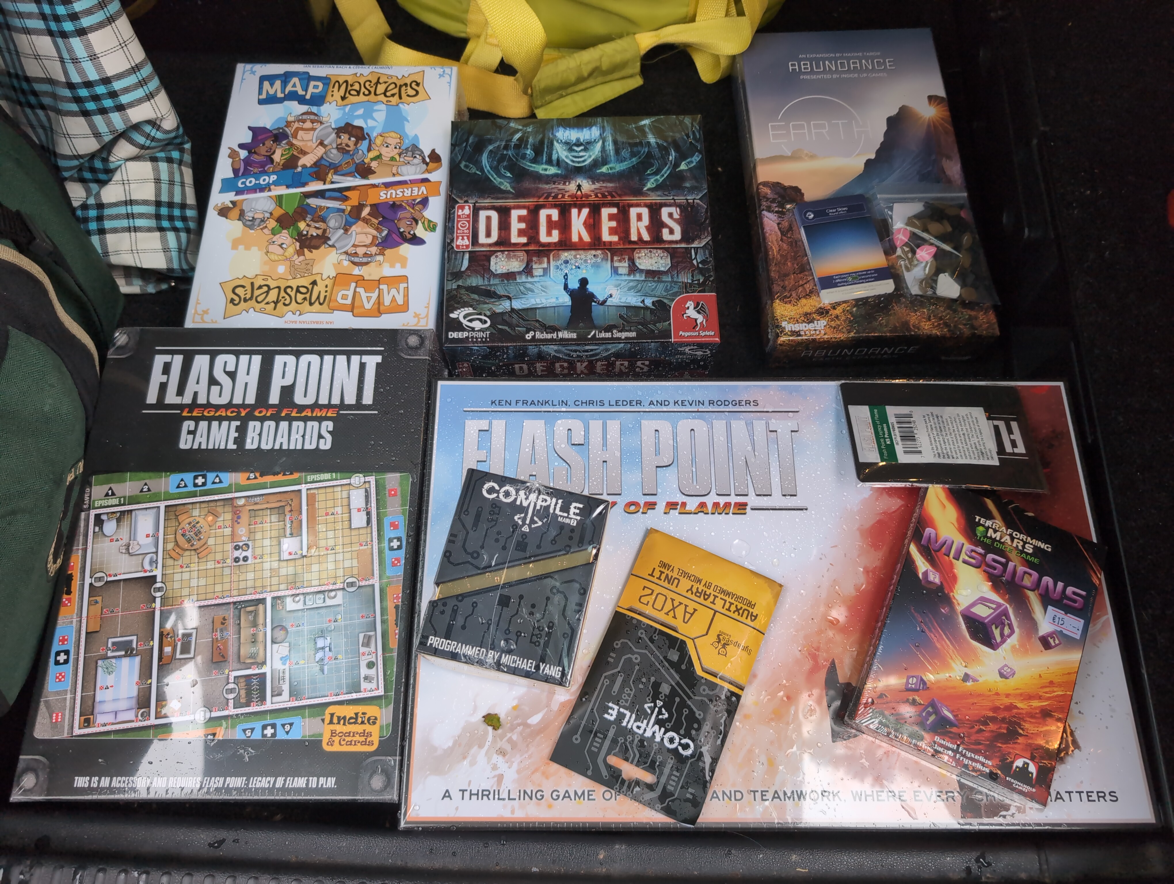 On the way through the Asmodée hall on the way out this evening, I noticed that they’d rigged up extra-bright lighting rather than the standard. As I walked past demo tables, their people were standing around looking vaguely dazed; one in particular was just unconscious-upright like a pithed frog, until someone came to her table and she visibly switched on. Glad I’m not working for them!