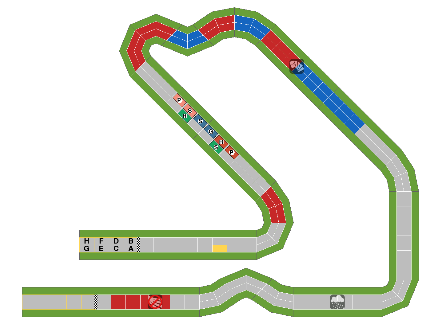 Slipstream for red R, green S, red P