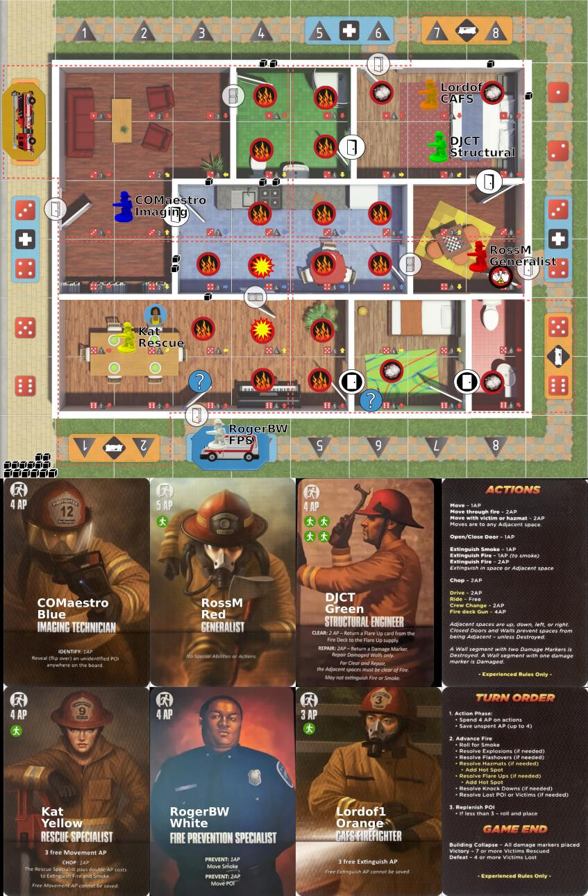 - Flip fire marker 5, 3 to smoke (2 AP)