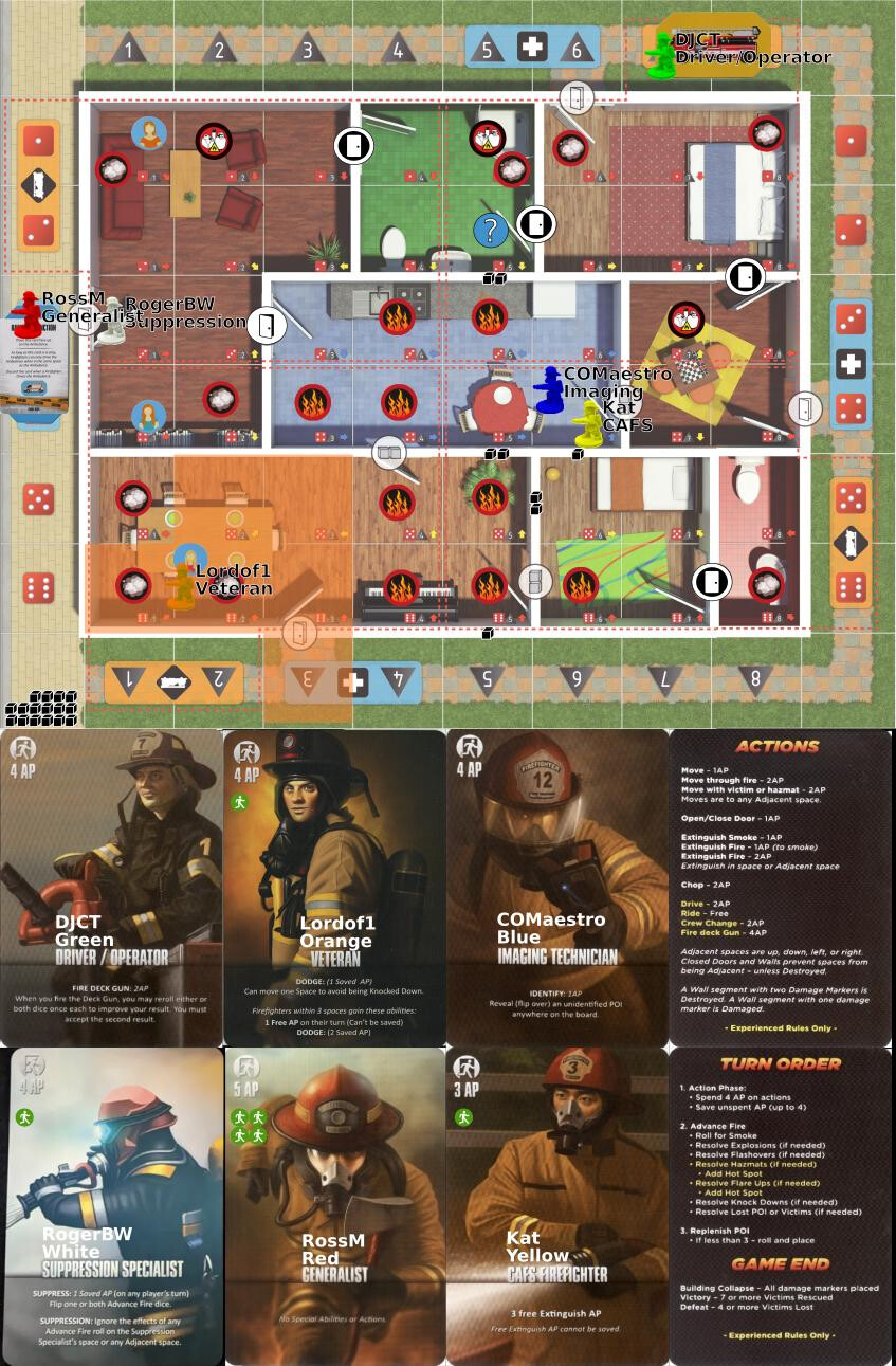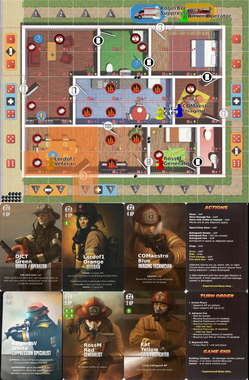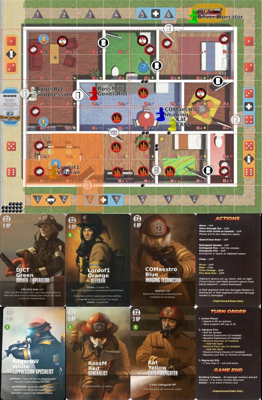 Move to 3,3 extinguish all neighbouring fire (4ap)