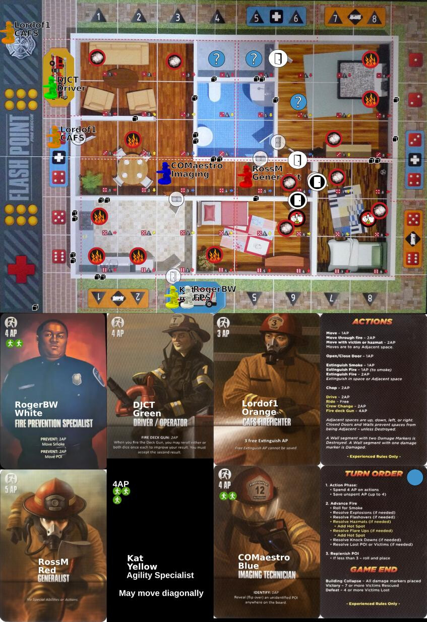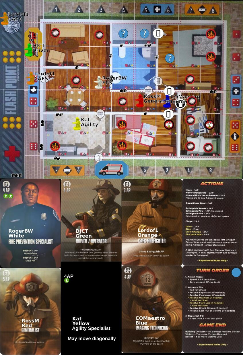 - Extinguish fires in 5,1 and 6,2 (4 AP)