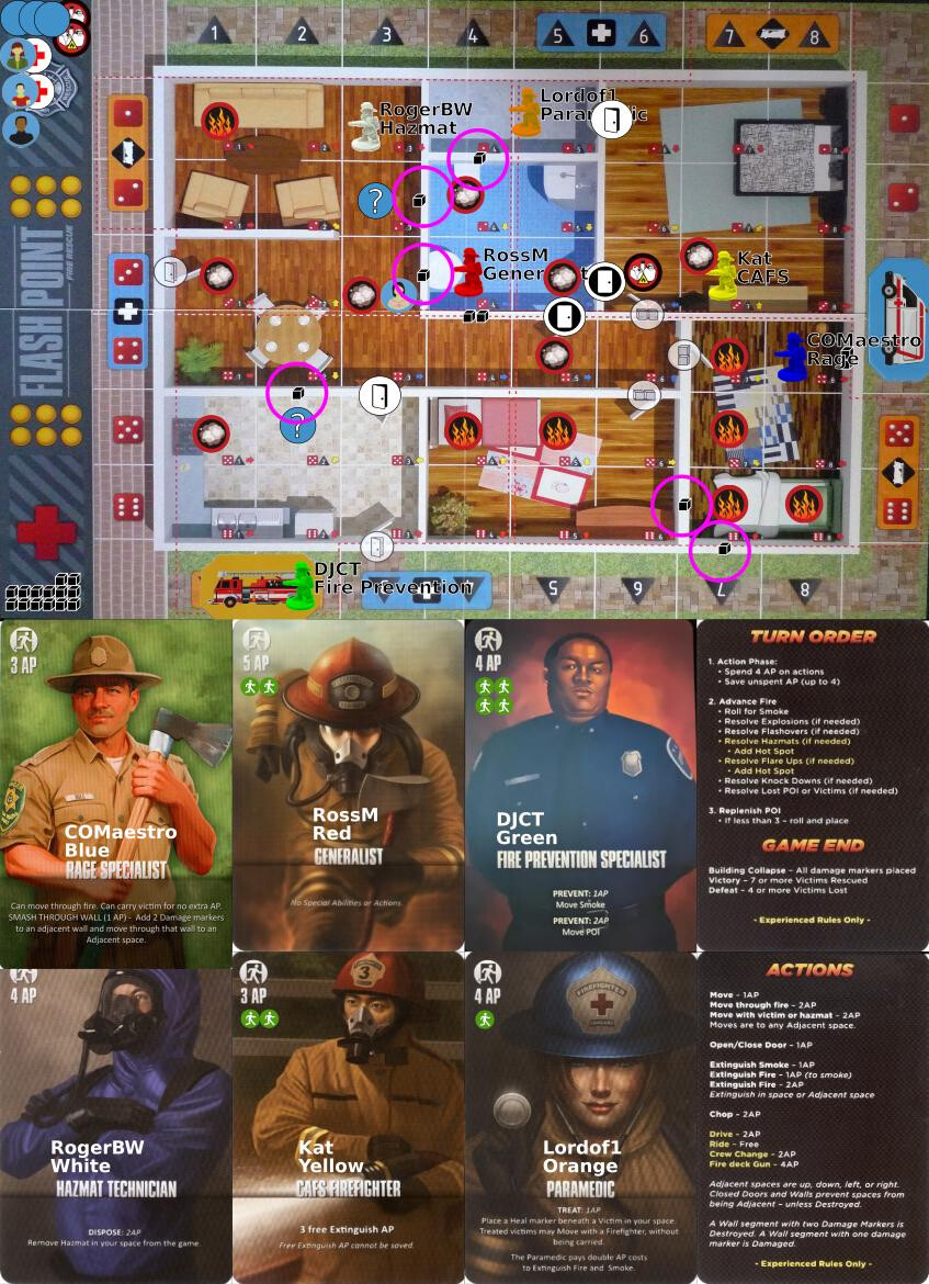 - PoI at (2, 3) could start to be pulled out, though I’d probably pull the smoke at (3, 3) first. You can move a PoI through a Victim without it being revealed.