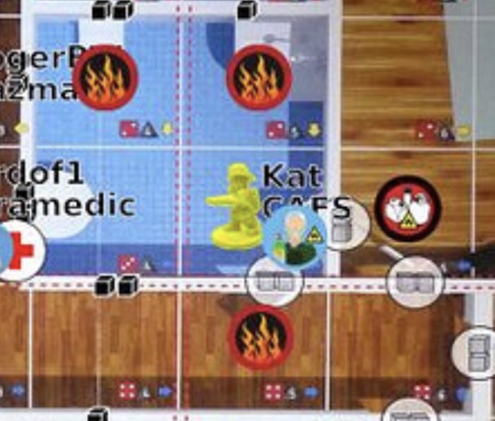 - PoI at (3, 4) moves E [2]. It’s the victim with the oxygen tank: double move costs, and explodes if Lost.