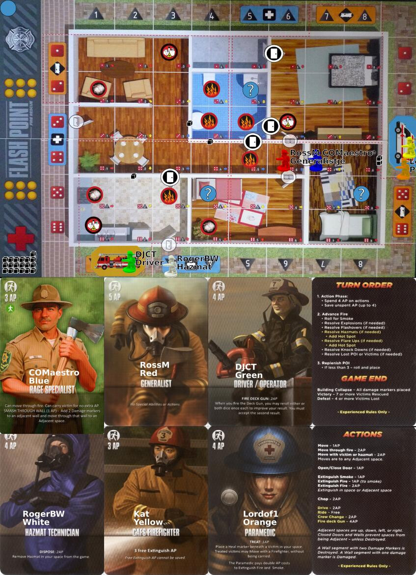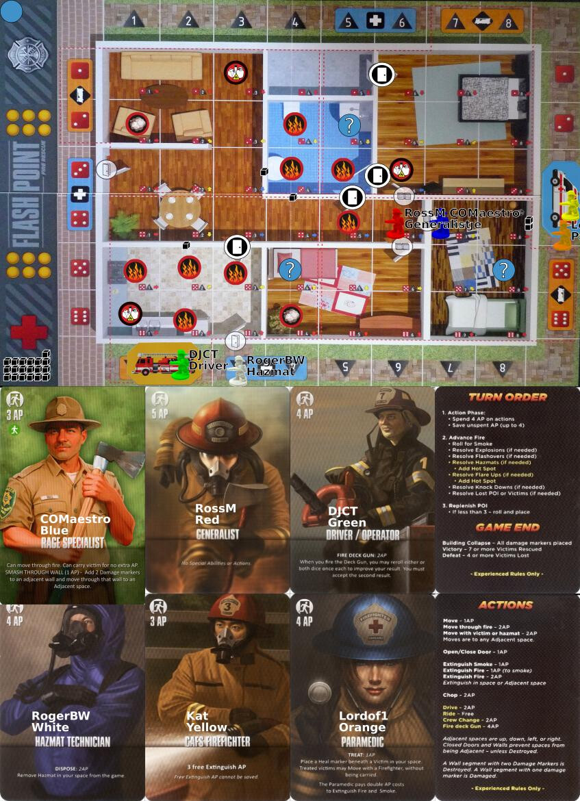 What’s your preference? I can go in and dispose of that hazmat, but I’ll need to spend (at least) your next turn in that quadrant to do so. Or I can extinguish the fire at (5, 3).