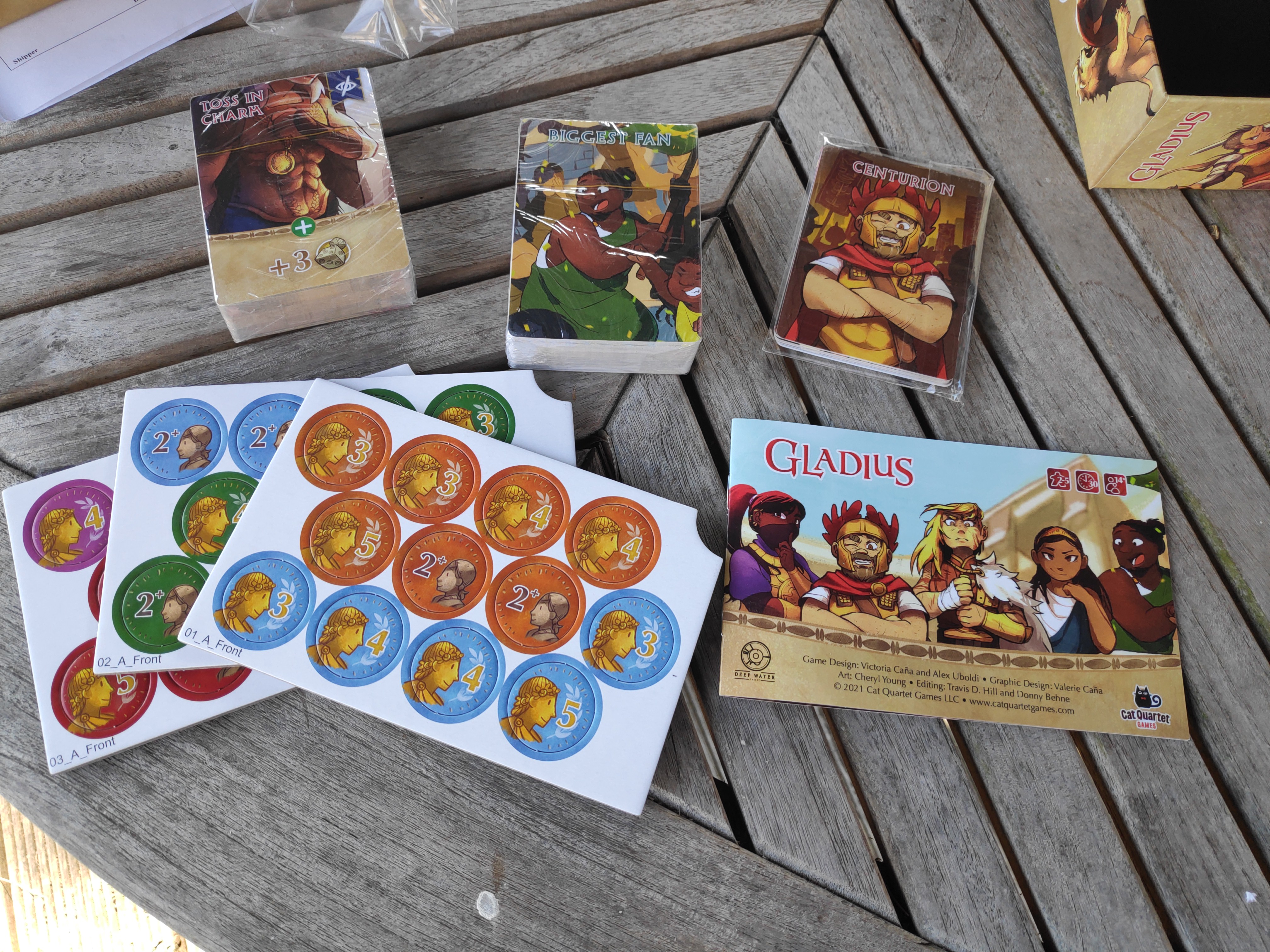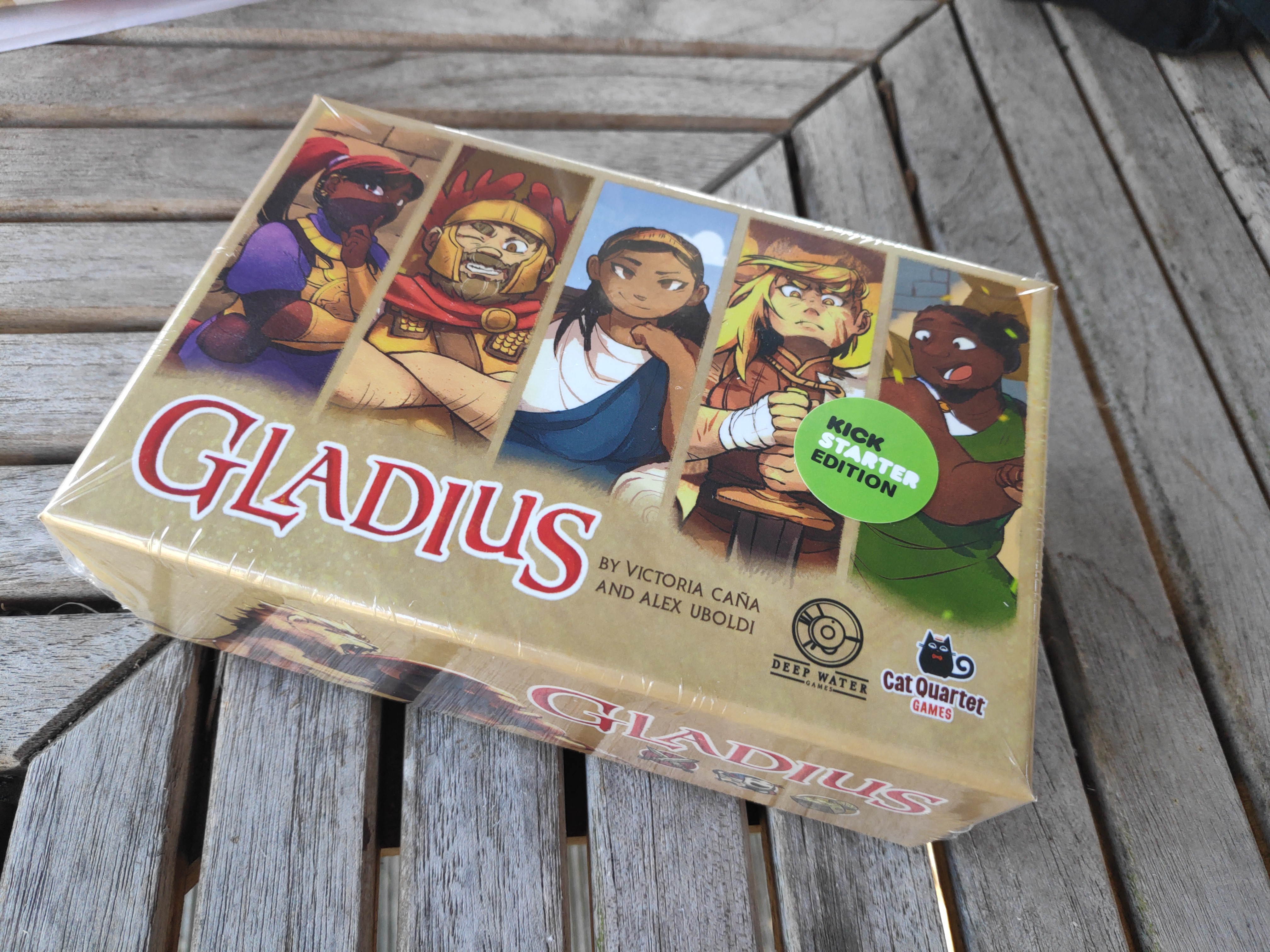 It’s basically “semi-secretly bet on gladiators, play cards on gladiators to influence the fight, collect your winnings” but it’s in a nice small box and looks like fun. We shall see. 2-5 players, best with 3-4.