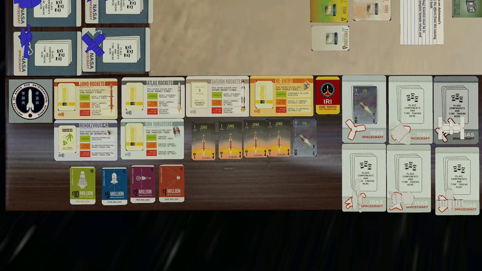 Confirmed on your recapitulation. OK, taking that as “no actions for now”, so on to @RossM. (I mean, technically you assemble the craft on your turn and then pass it over, but I don’t think the tiny details of sequencing matter.)