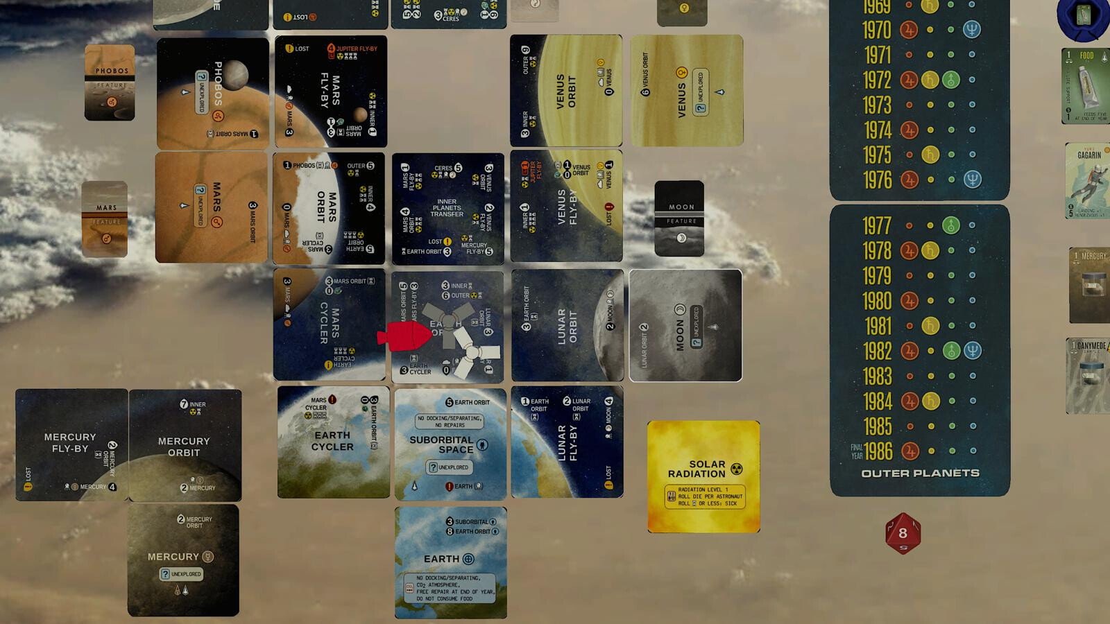 (2) use Surveying from a location that has a manoeuvre that leads to the body (e.g. Mars Fly-By to Mars), or that has a telescope icon ditto (Jupiter Orbit to Jupiter). If you’re planning to use a Fly-By, note that you can only try Survey once per turn per probe/capsule.