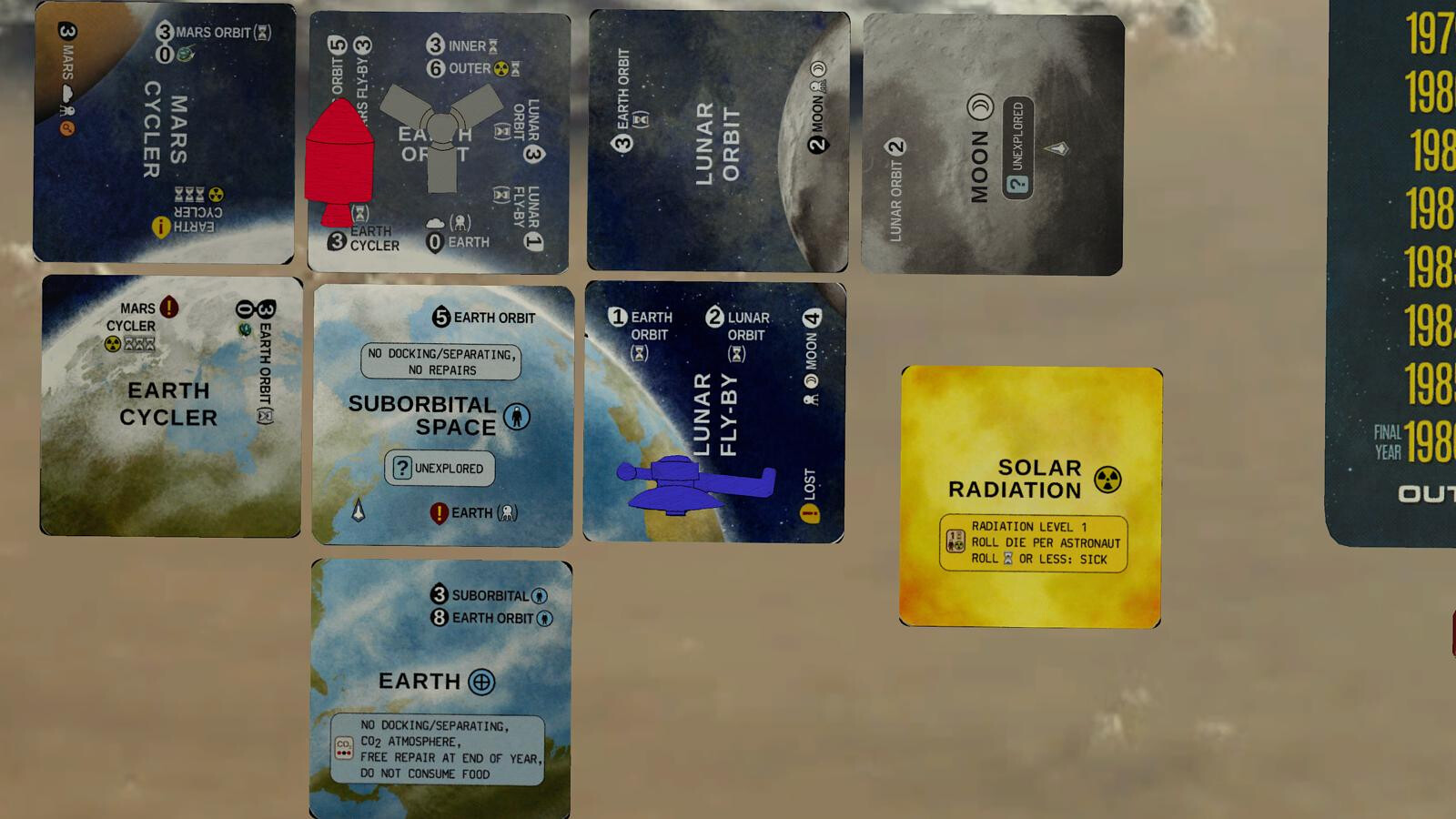 Test Surveying vs Solar Radiation. Success, free removal.. I learn a thing about that, which in the interests of international amity and siblinghood I will share with the world: level 1, astronauts sick on d8 ≤ , probes not affected.