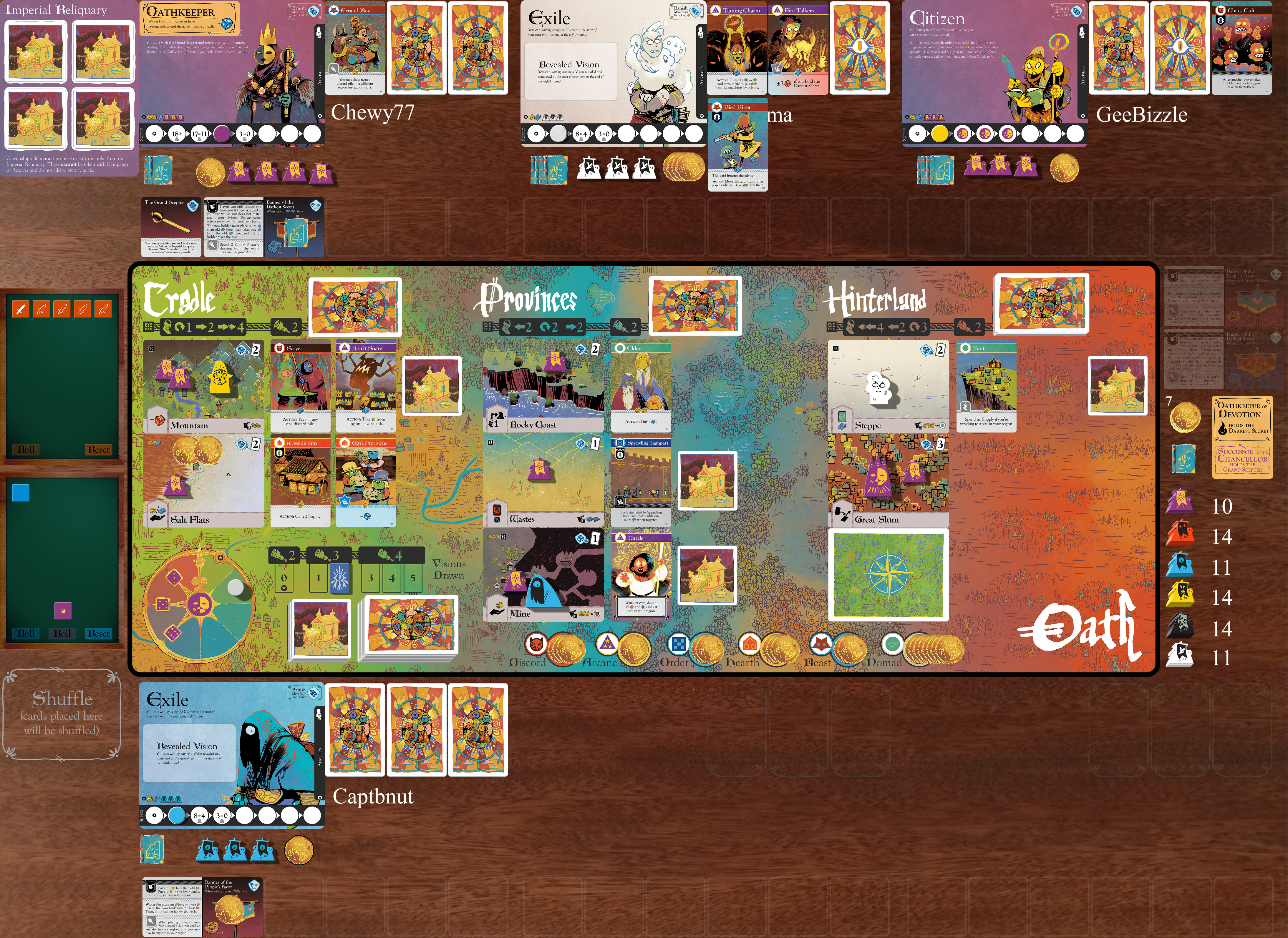 I will just place 1 warband as garrison in the Slums. I reveal errand boy as one of my advisers, and rest for now.