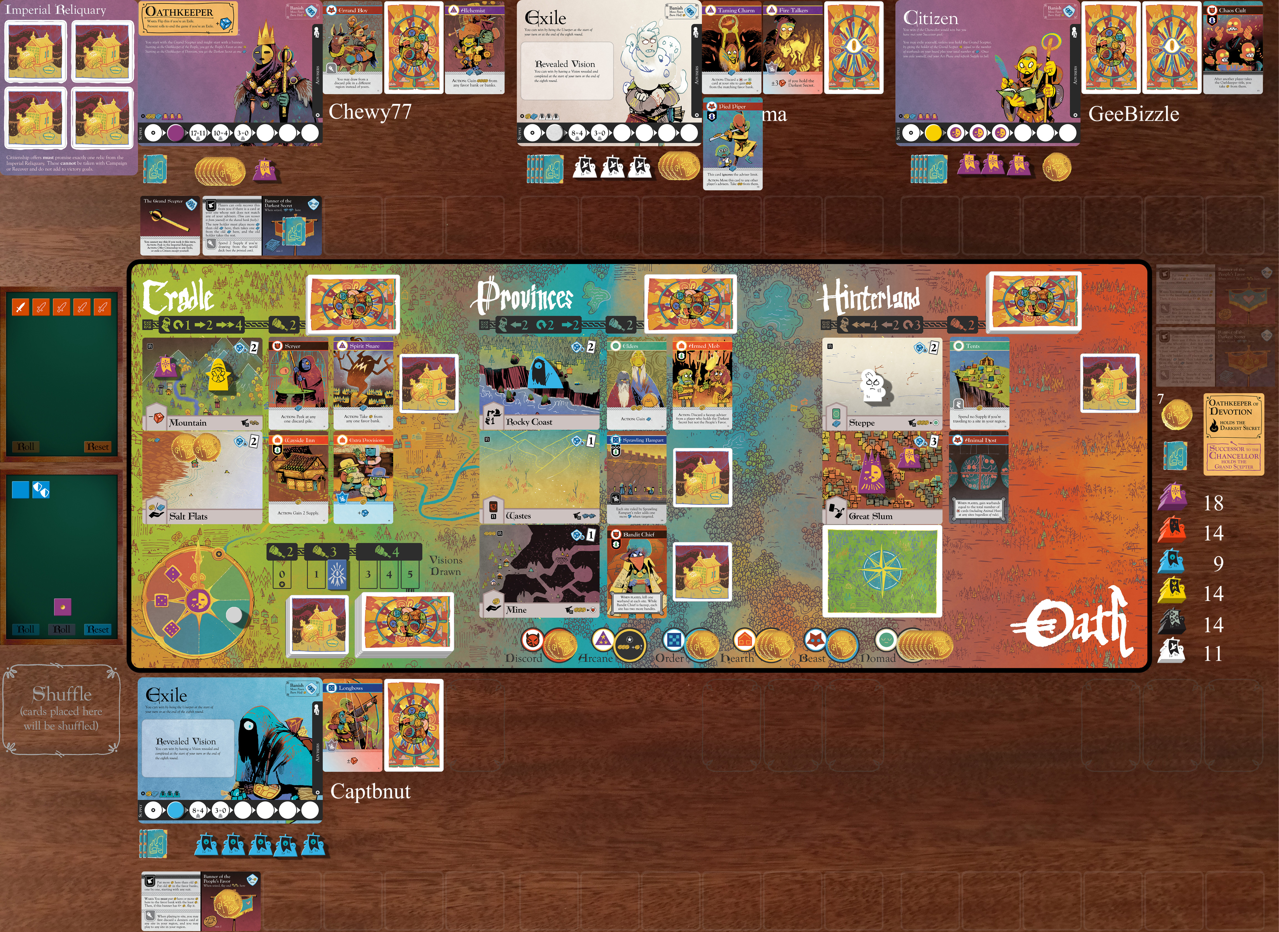 Captbnut takes the Oathkeeper title, and Geebizzle’s Chaos Cult takes 1 favor from Captbnut as a result.