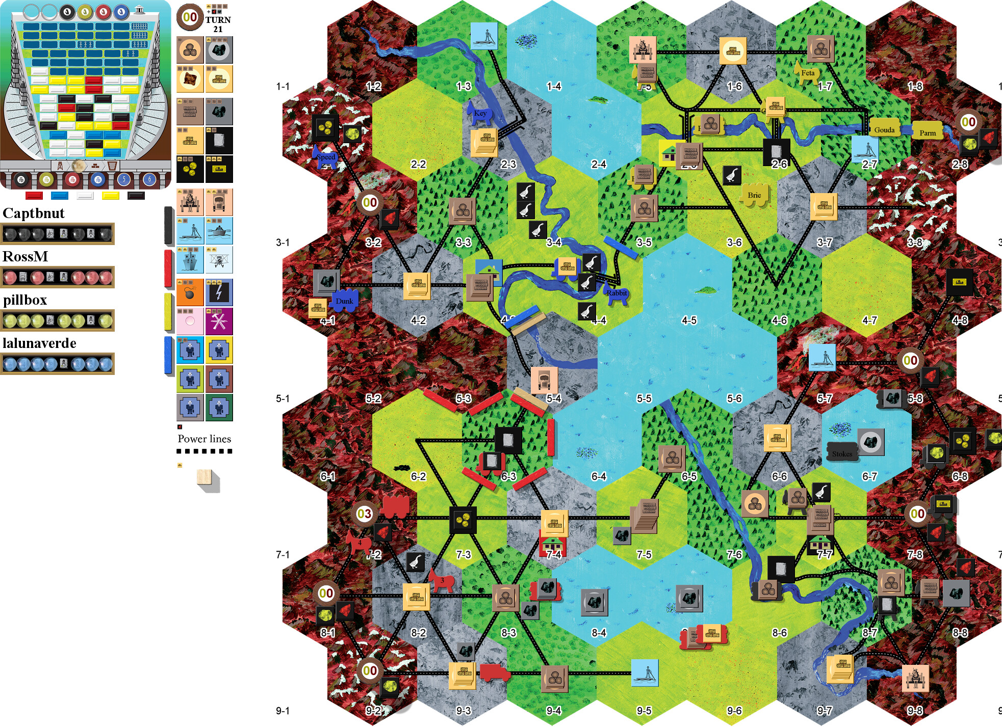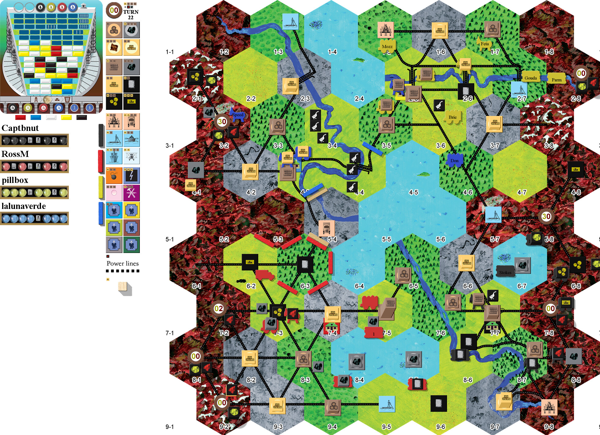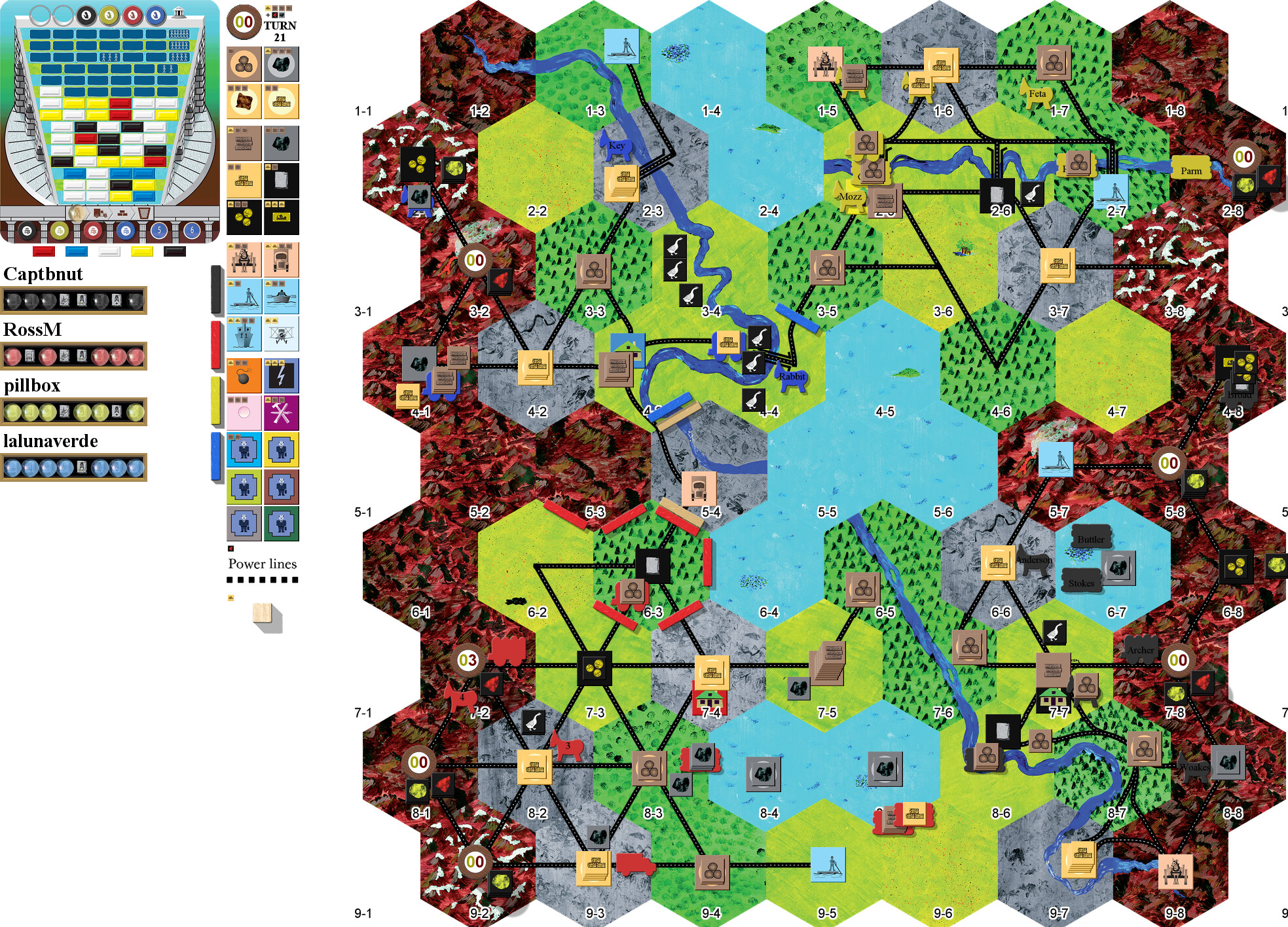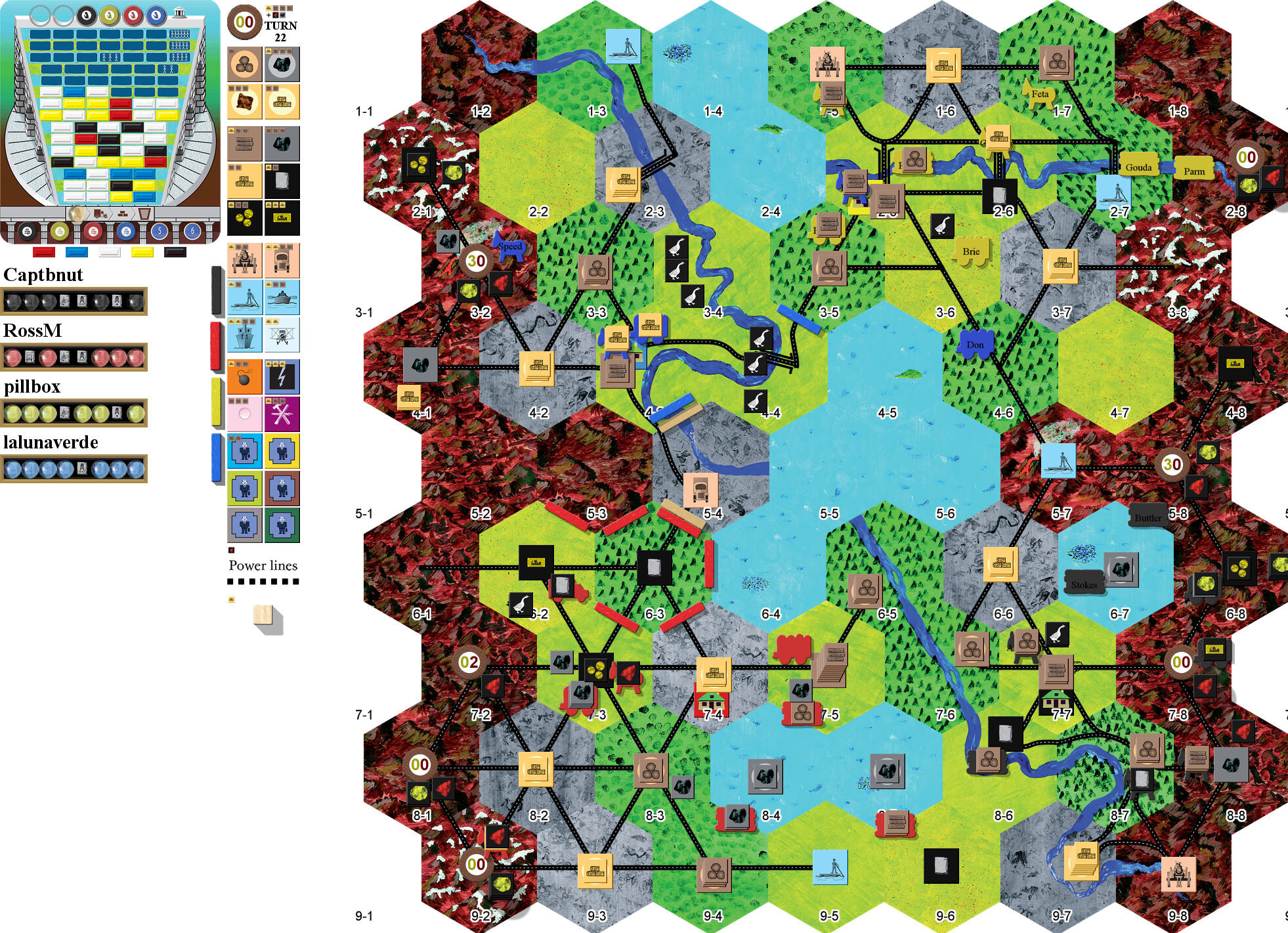 To my surprise, no conflict called for movement, so we proceed in player order. I’ll do Captbnut’s movement and RossM’s movement now. Next up will be pillbox, then lalunaverde.