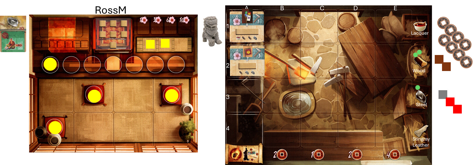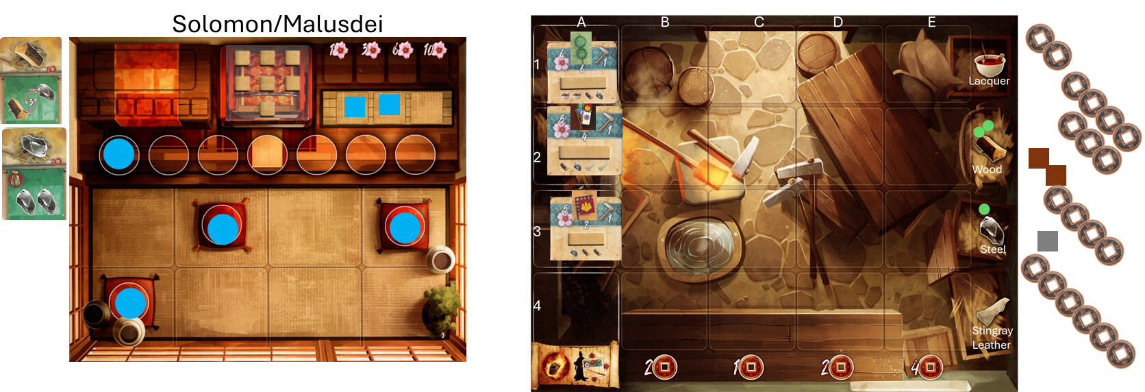 to remind everyone… yes, we will be using the “Metal Katana” extra rule. We normally call it “The Shogun’s Favor”. “The Shogun is very pleased with you for completing a Samurai Sword; he bestows this (temporary) gift upon you.” This might free up a worker for you. PM me if you aren’t able to find those rules.