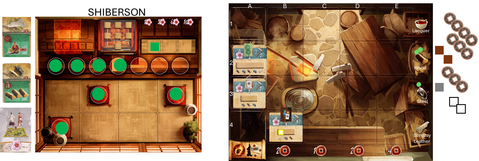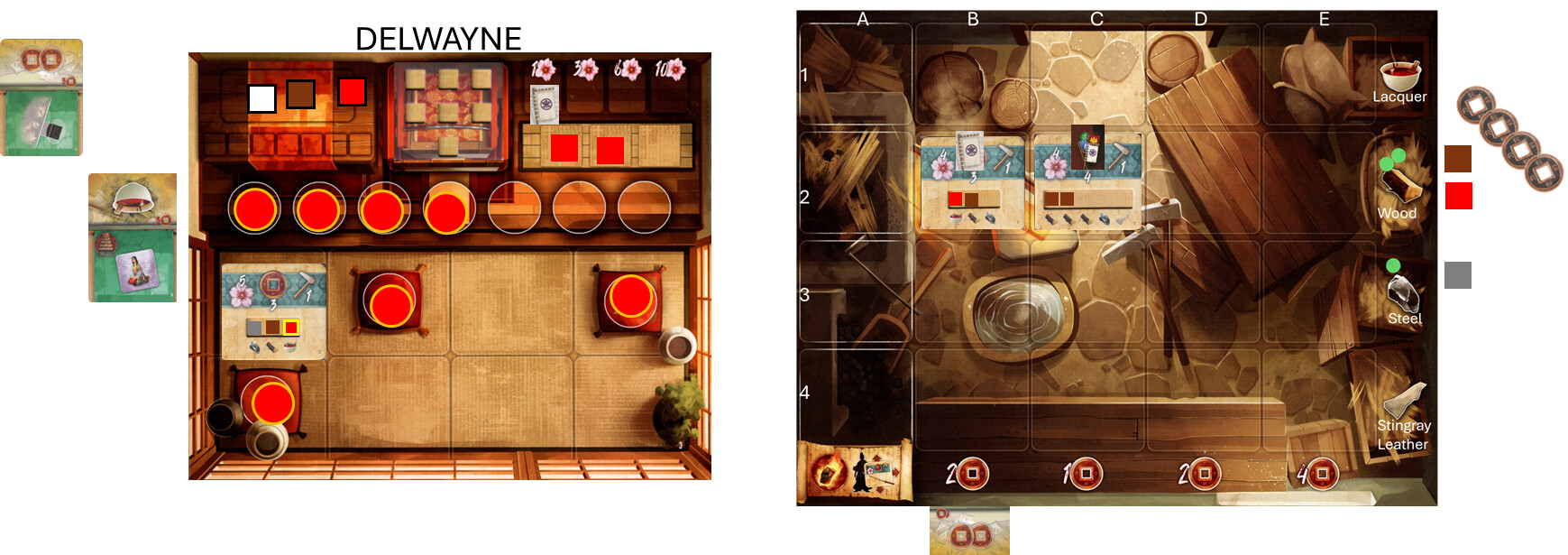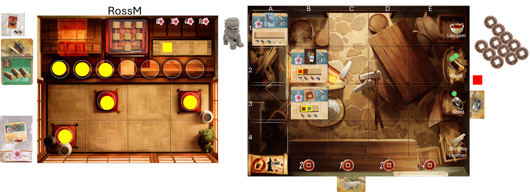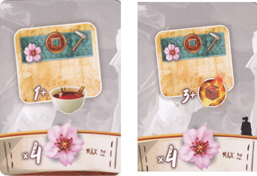 You will also notice, when I completed my sword, I took 2 resources from the supply (as defined by my sword) to be used in planning my Shoguns Sword. It was a wood and a Lacquer.