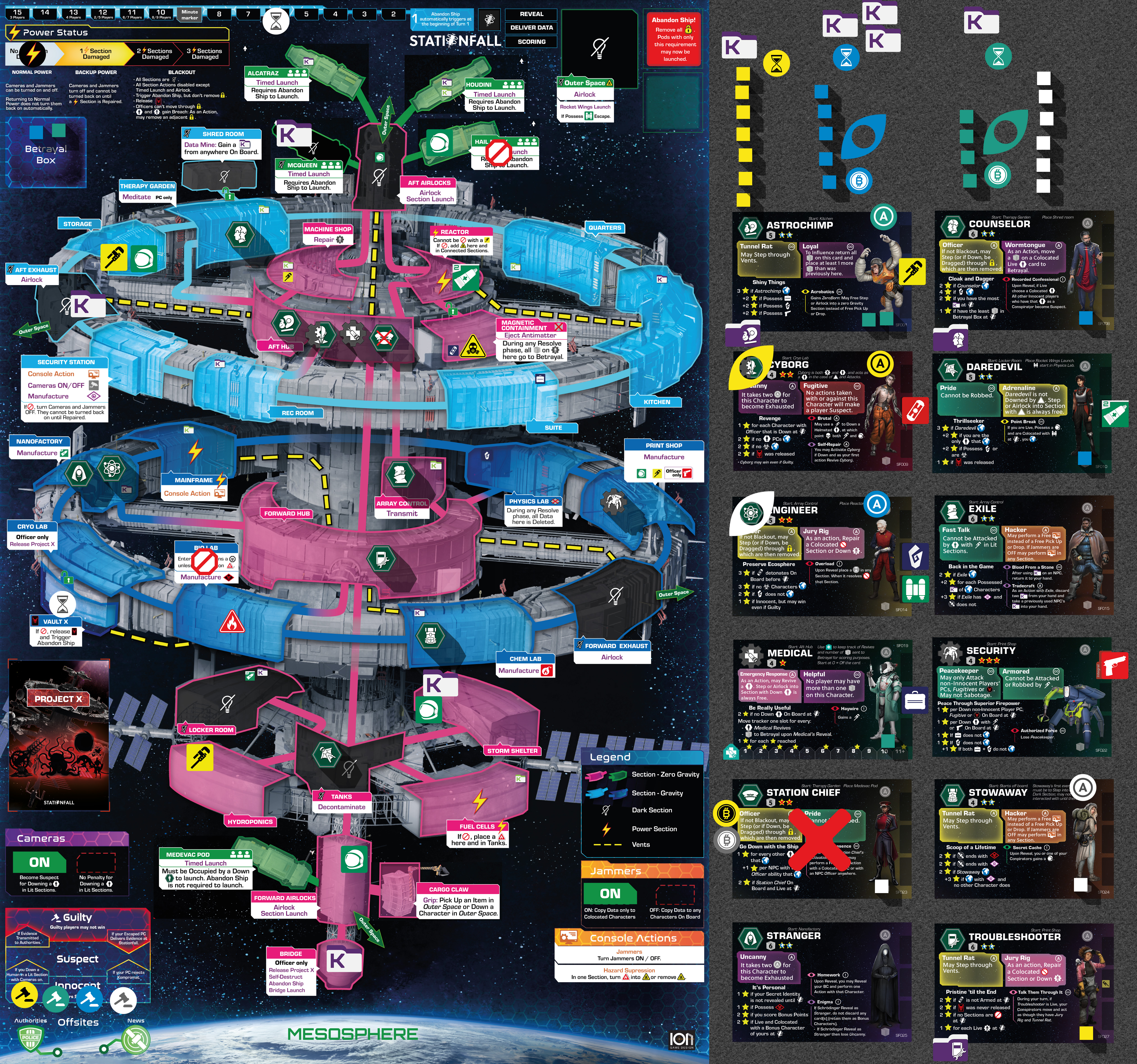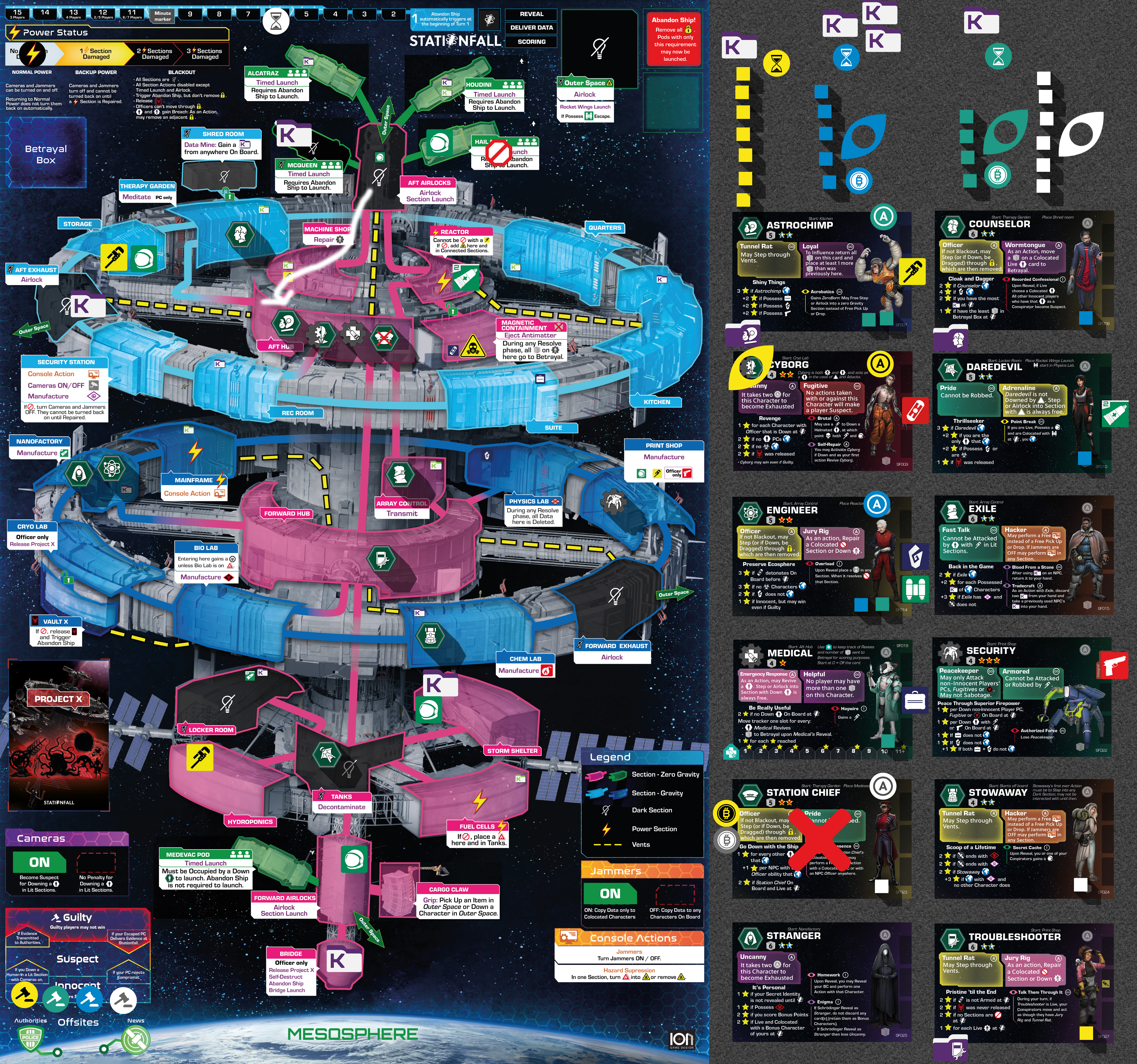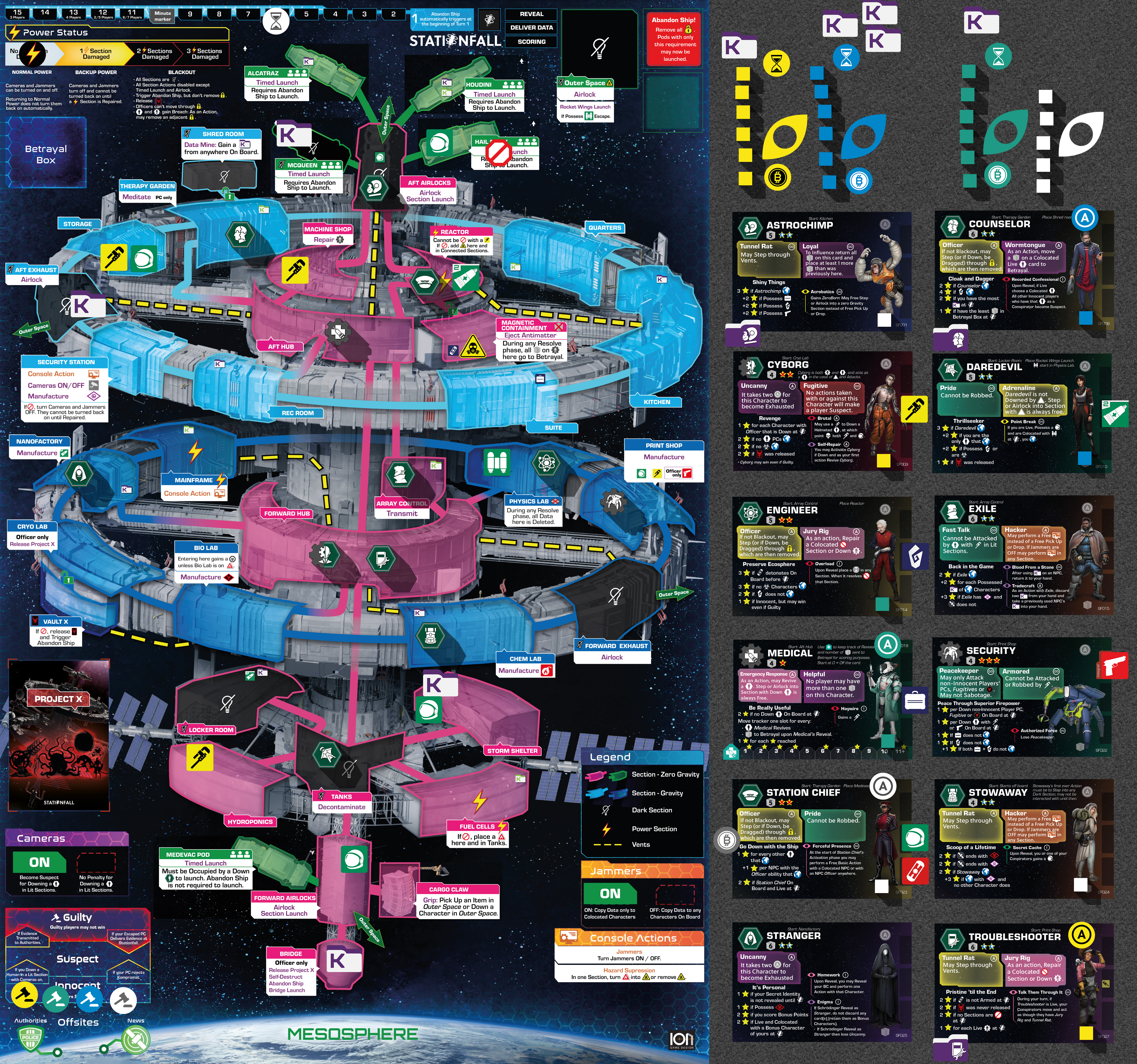 Many Character’s Agendas involve Escaping the station. It is also important for BC Friend points . To Escape means that a Character has been moved to the Mesosphere. Characters in the Mesosphere are marked with the Escaped marker , which is placed on the Character card. They cannot be Influenced or Activated any more.