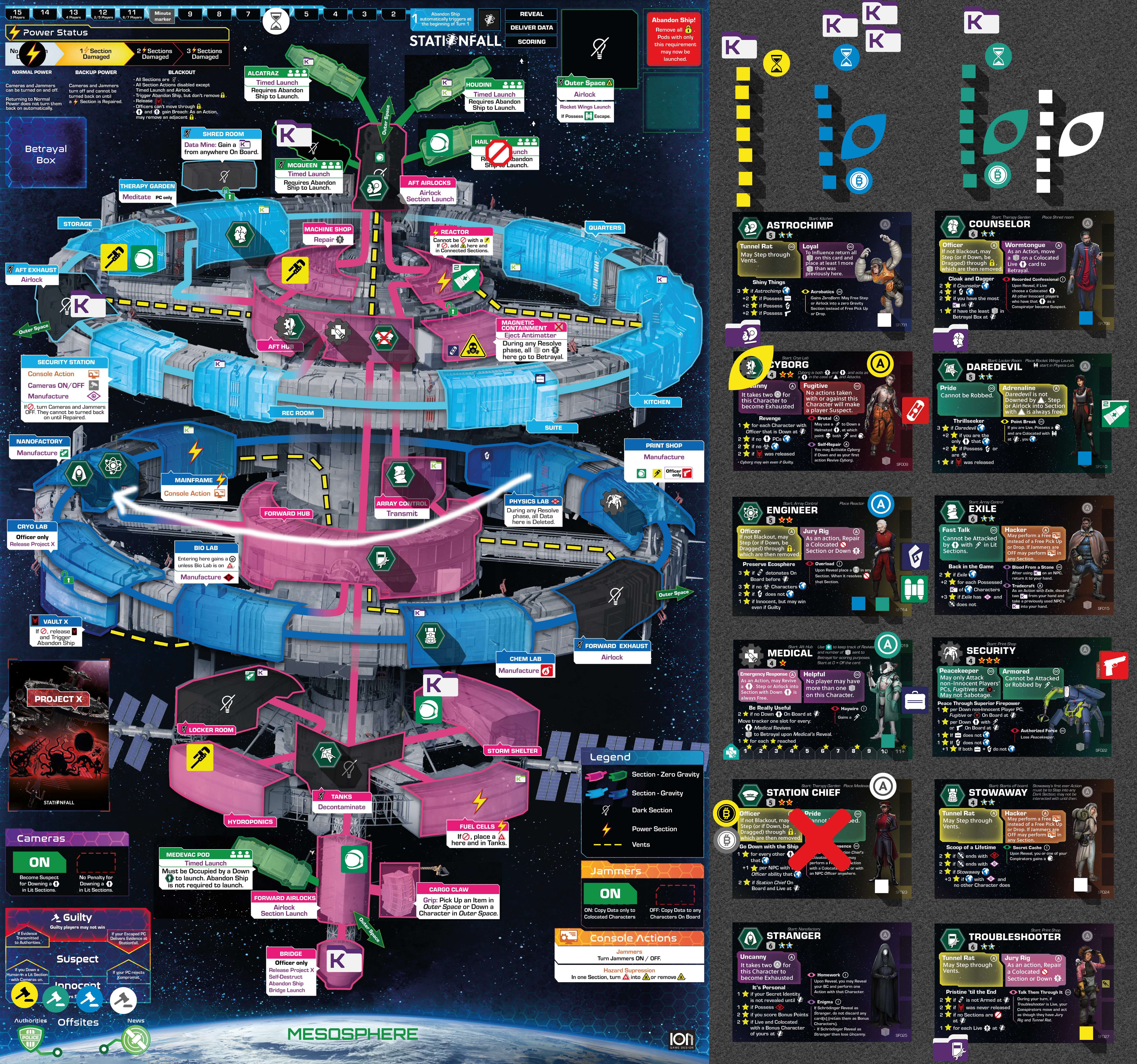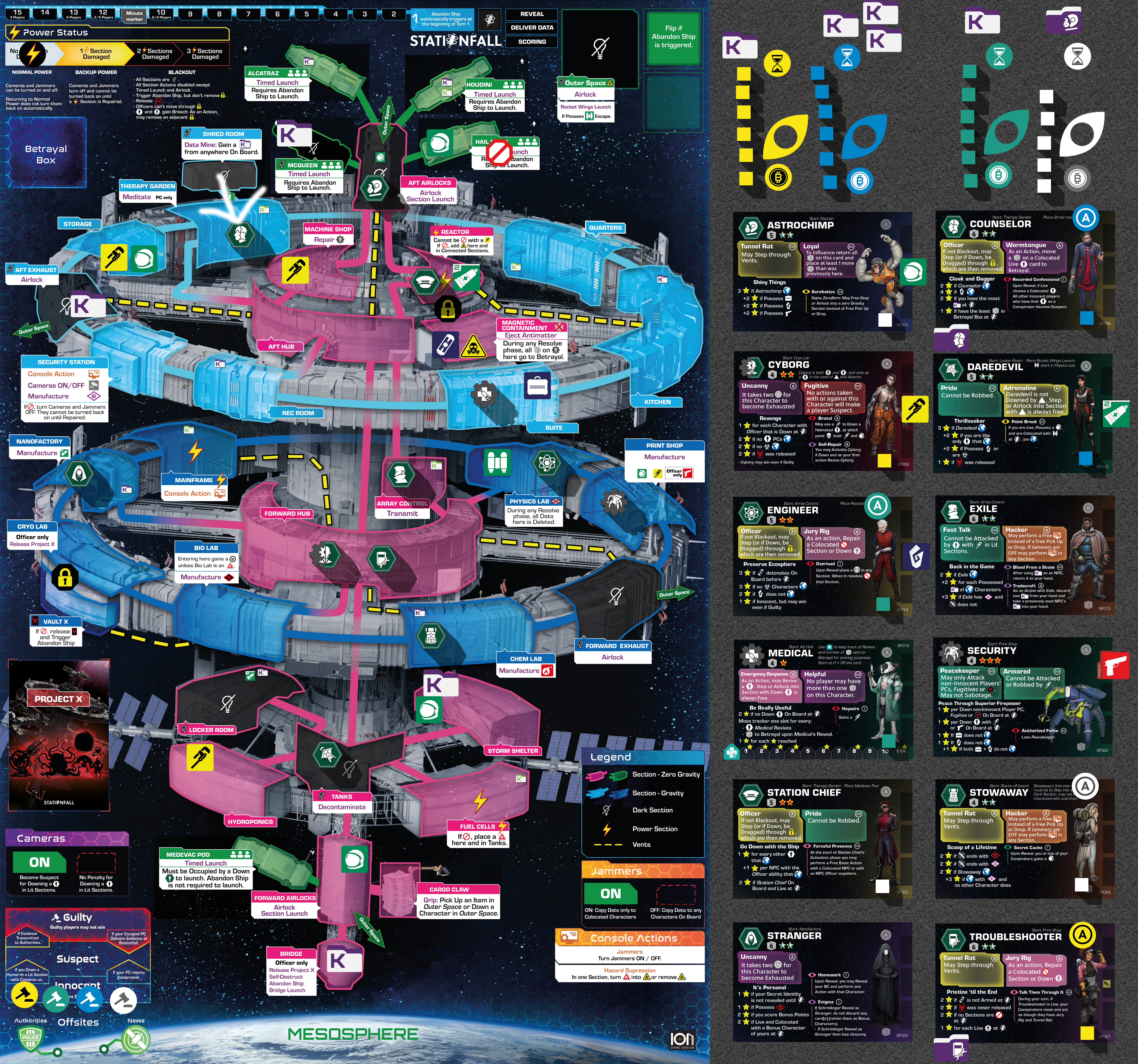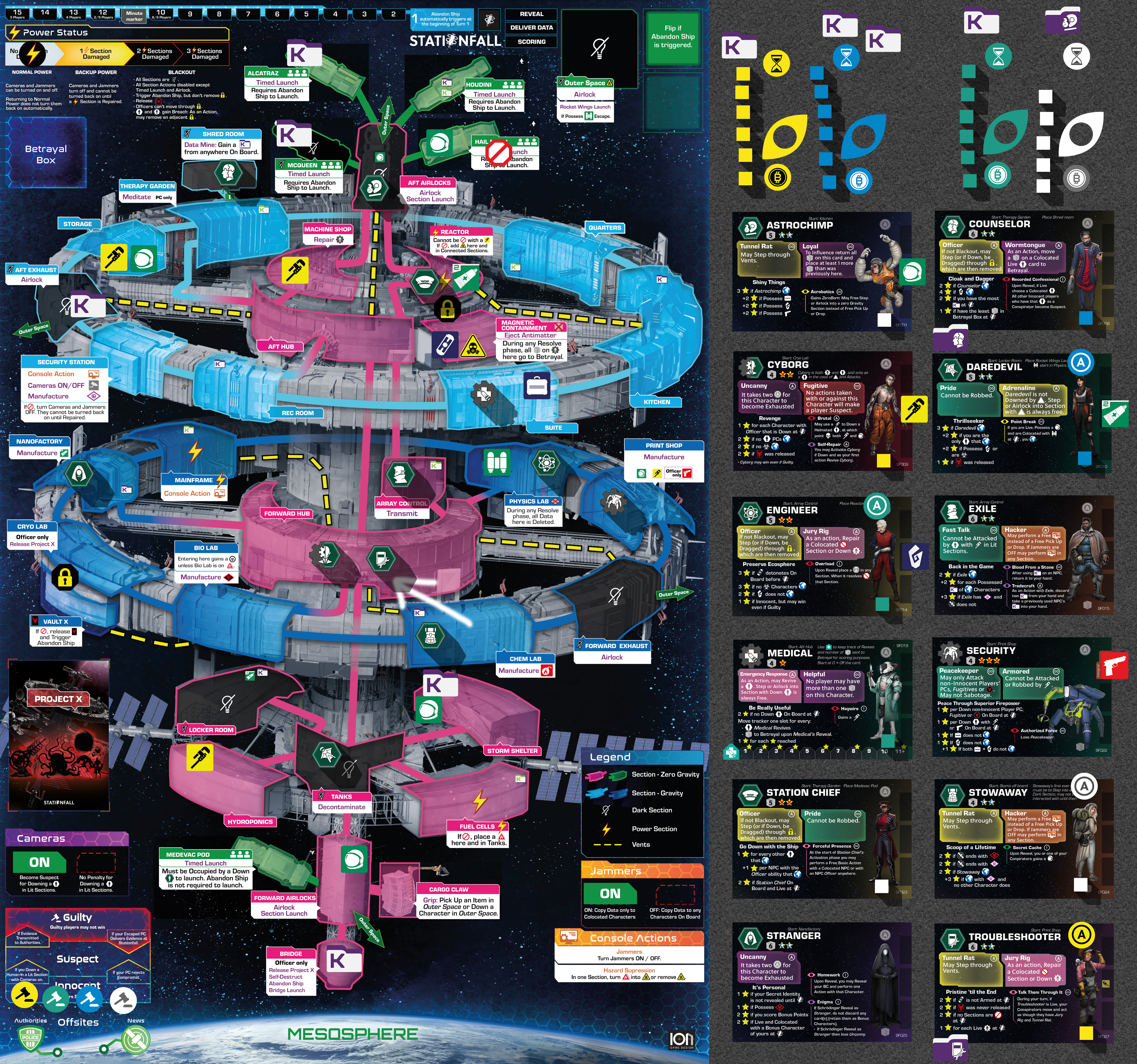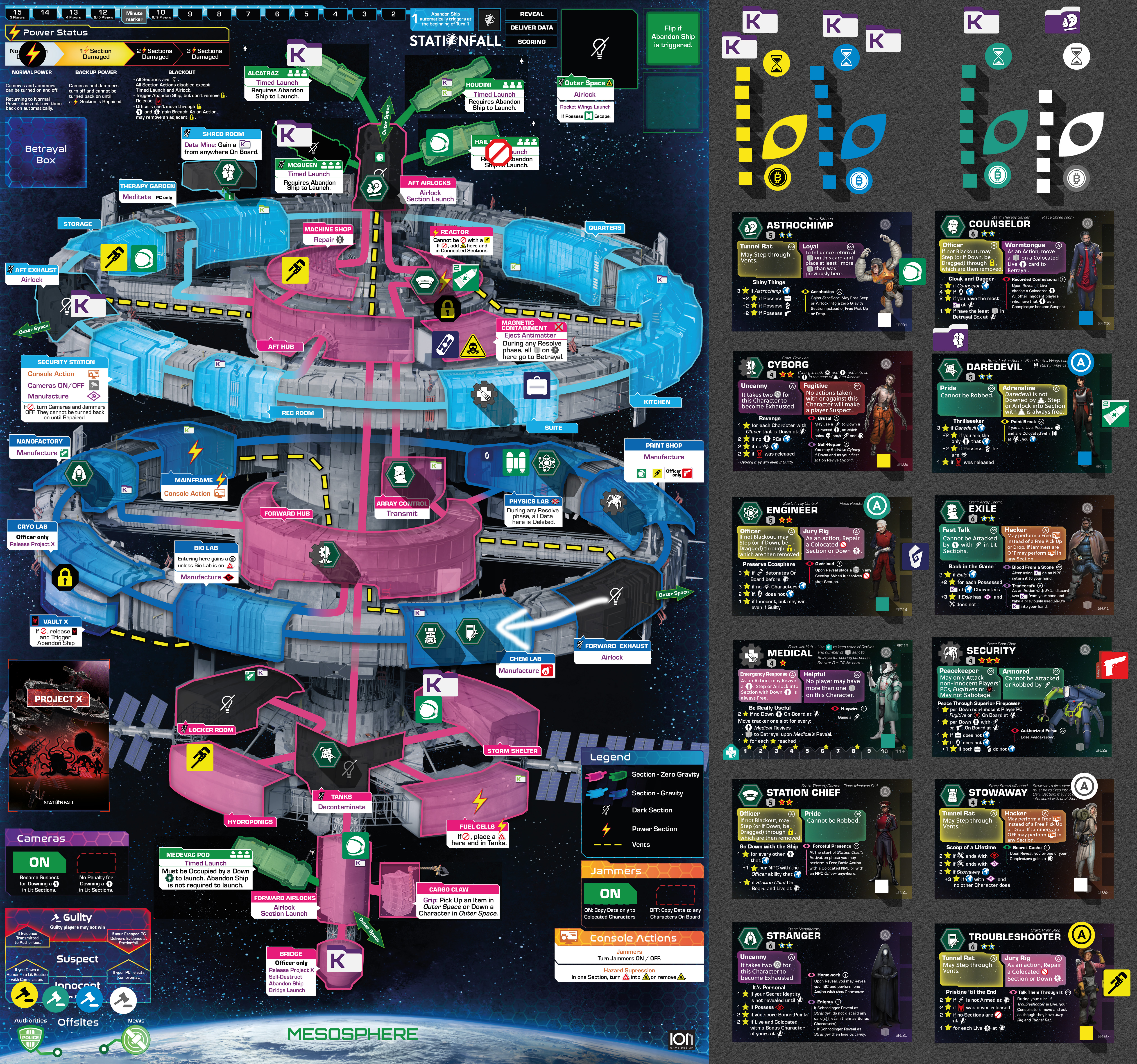 Many Character’s Agendas involve Escaping the station. It is also important for BC Friend points . To Escape means that a Character has been moved to the Mesosphere. Characters in the Mesosphere are marked with the Escaped marker , which is placed on the Character card. They cannot be Influenced or Activated any more.