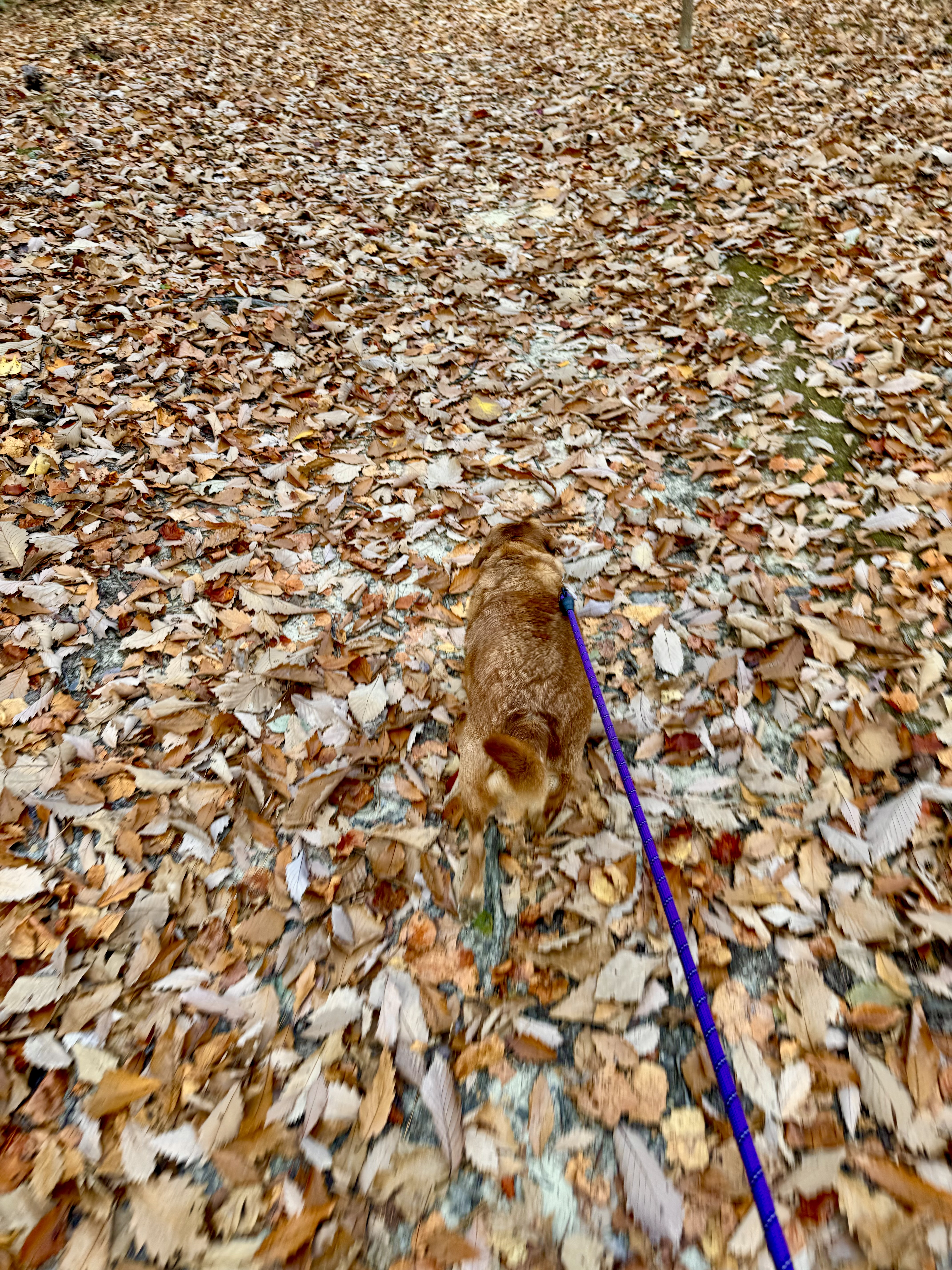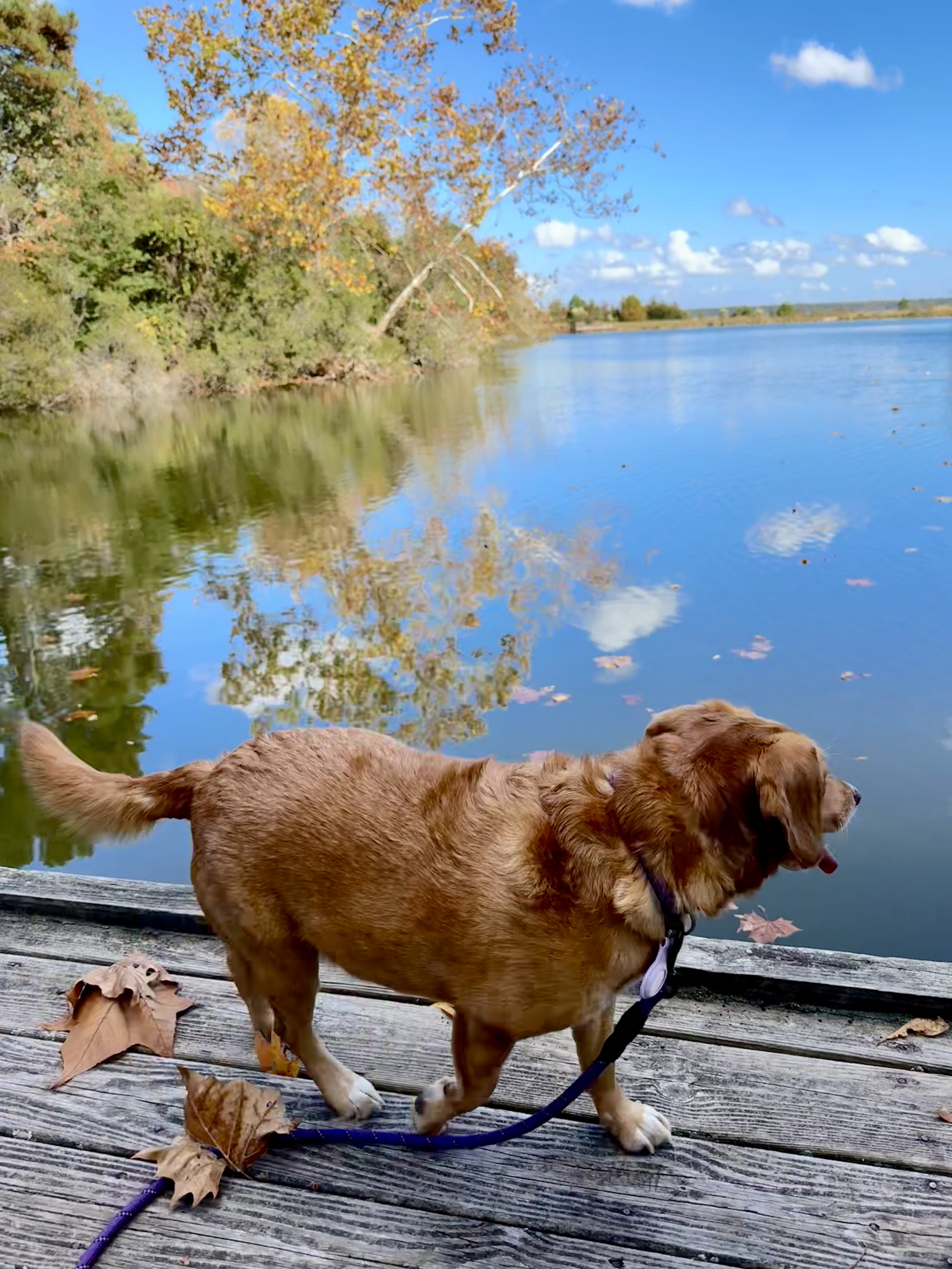 Some days you just gotta take a break from the internet and (lack of) news and take the fall-colored pup on a walk through the leaves to the river.