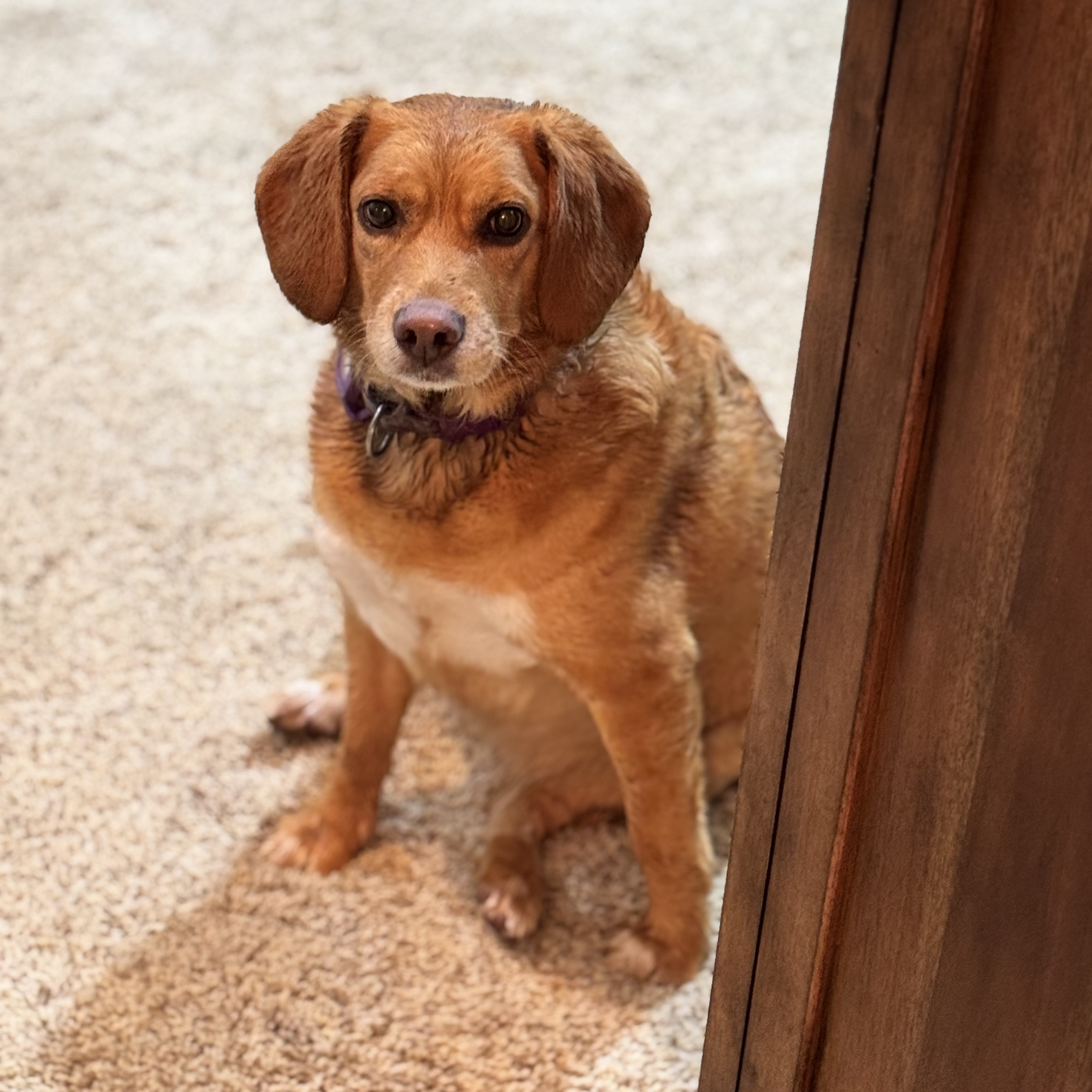 Gwen got out Thursday at 8:20pm. We looked for her for hours, tried to get a little sleep, then got up Friday morning and looked for her in the rain all day. We gave up for the night and were going to again try to get a little sleep when the rotten thing showed up at the door at 10pm Friday night. Sheâs wet and smelly and I donât care because sheâs here.