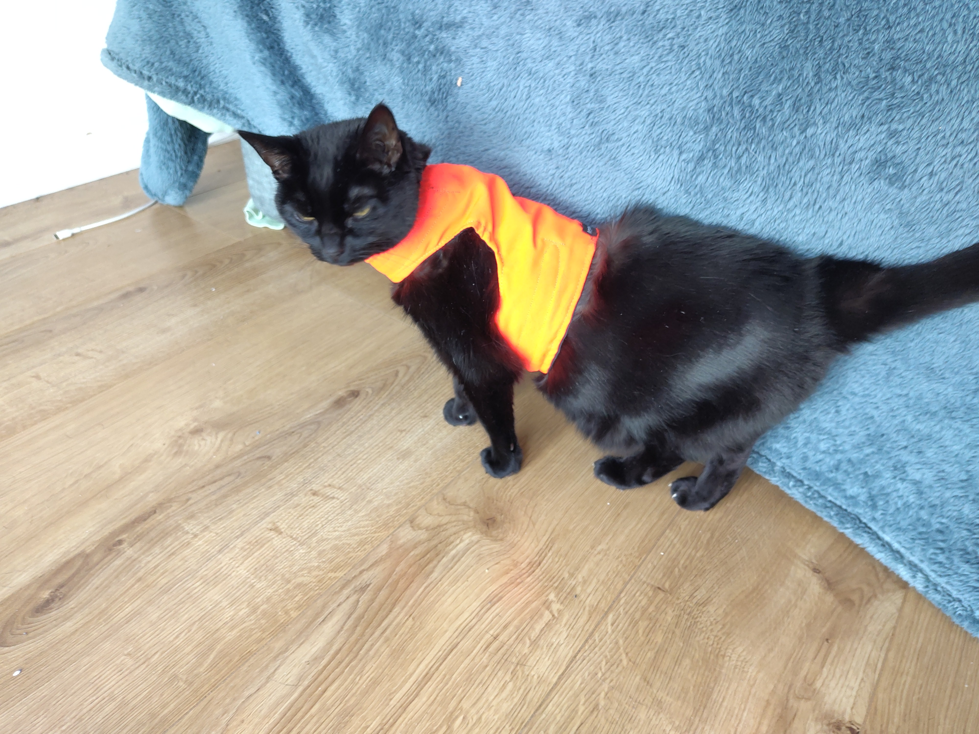 Iâm trying to get her used to the jacket so that she can go outside with a harness (sheâs an indoor cat)
