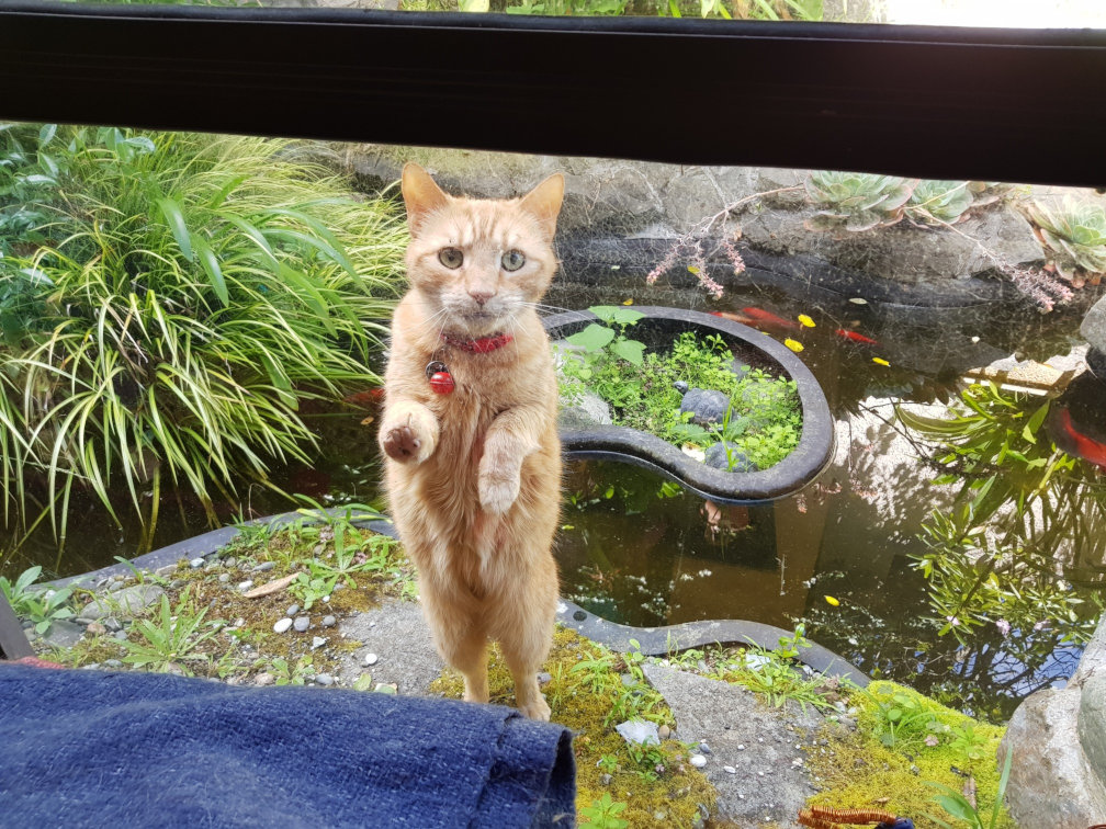 Translated as: âI would now like you to open the window and lift me inside, because I canât be bothered going back to the cat flap on the other side of the house.â