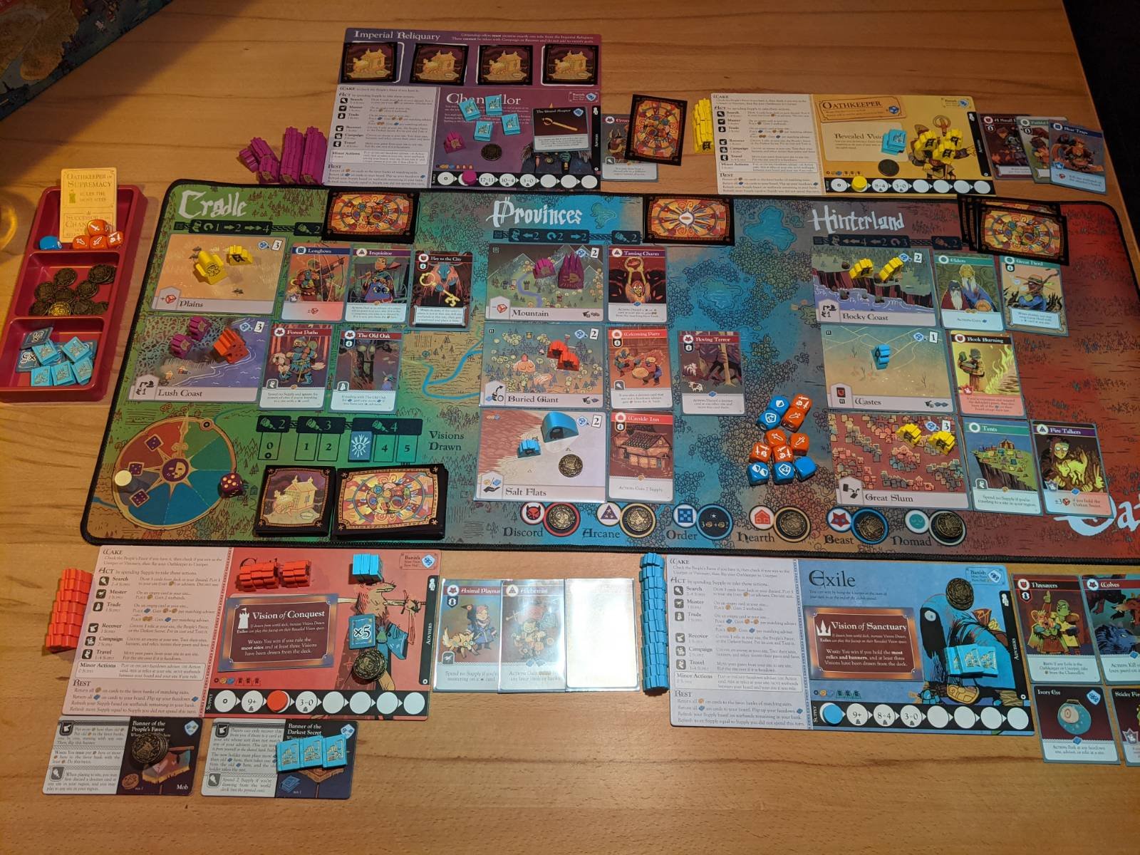 So after Oath arrived this afternoon I was delighted with the guided first setup and the walkthru for four different player turns that ends and leaves you with a four handed game to finish.