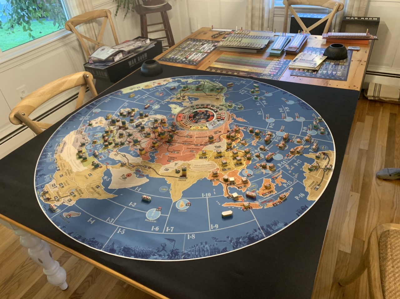 First “proper” game of Oath: Chronicles of Empire and Exile . We setup the game from the walkthrough, but then just played our own turns. Went ok. One of the Exiles had a few secrets, and grabbed the Banner of The Darkest Secret, then played the Vision of Devotion, which would give her the win at the start of her next turn. Obviously, that makes her a target, so the Chancellor targets her banner, and succeeds. I collected three relics, and played the Vision of Sanctuary (have the most banners and relics).The chancellor attacks me, and wins one of my relics. On my next turn, I consider attacking back, but decided it was a lost cause. At the end of turn six, the Chancellor rolls a six, and wins the game. Not sure how this game is being received. I like it ok, not in love with it. But maybe that’s just because I bought it. Another player says she doesn’t want to play again, says she doesn’t know what she is doing (same player who would have won from her Vision). It’s an odd game, and takes a few games to get your head around. We did save the game state, ready for the next game. Basically the winner gets to keep sites they rule, and we remove six cards from the deck and add new ones. The new cards added are whatever suit the winner had the most of.