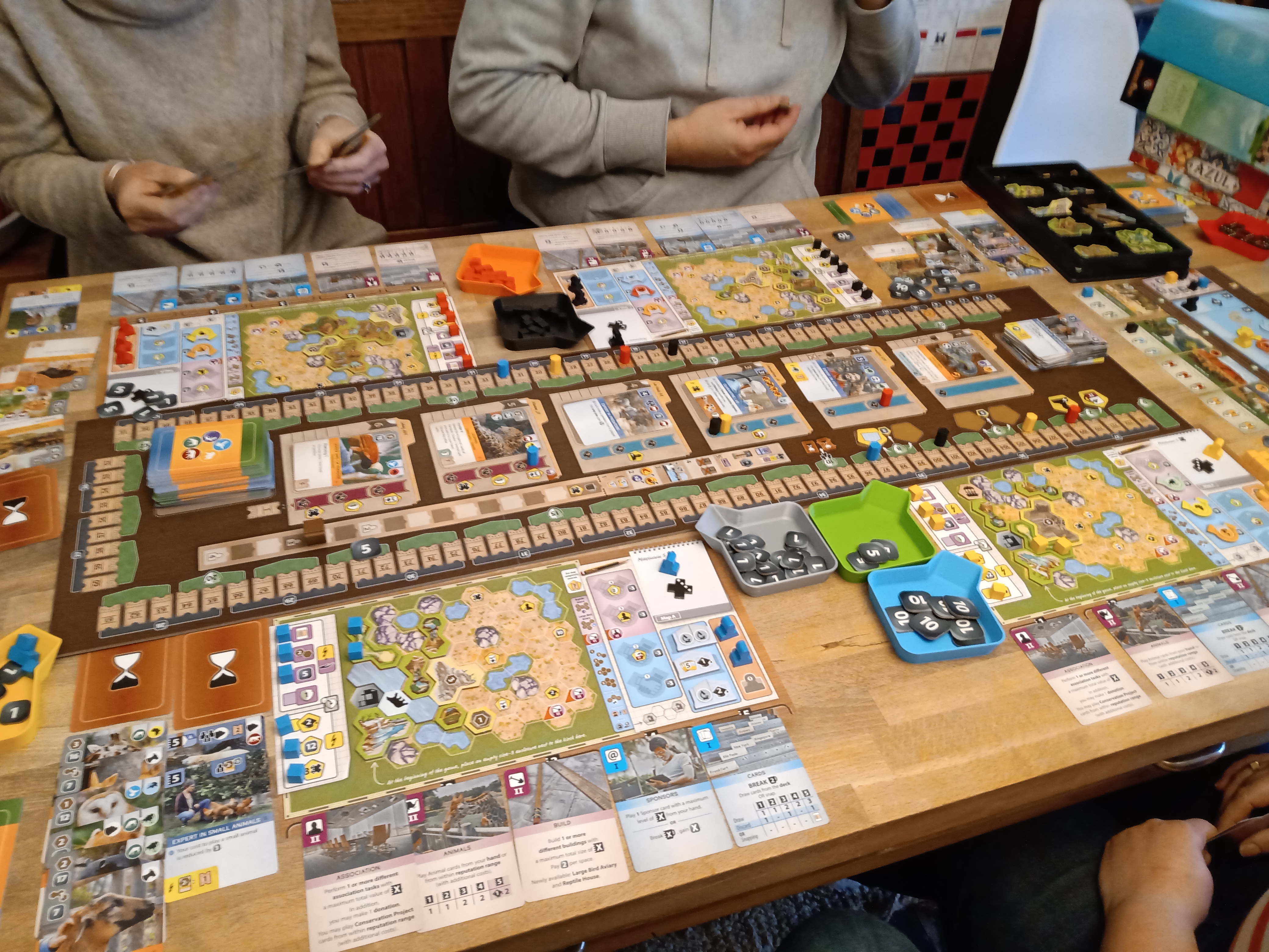 Ark Nova. Our friend’s new favourite game. Very Terraforming Marsy. Lots of cards, lots of combo actions. Little interaction apart from a few cards that feel like tacked on nonsense. The production is amazing and I like the stock images. A year ago I’d have loved this. I enjoyed it a lot more than I’d feared, but right now a 30 minute teach for a 2 hour game? Give me 5 minutes of rules and 3 games of HT any day.