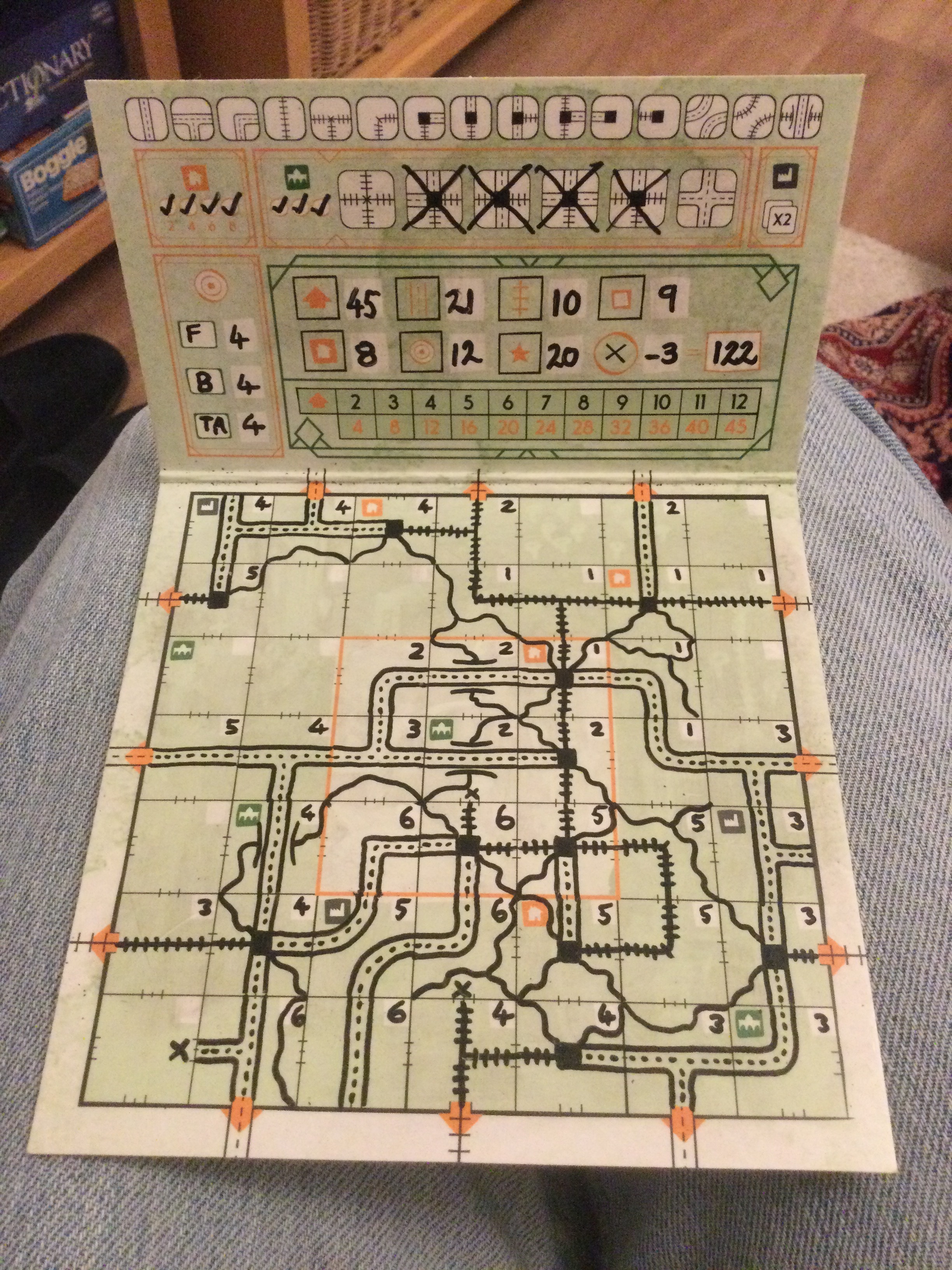 - Railroad Ink: Lush Green x3. In a reversal of usual trends, I won all three of the games I played with my wife, albeit by ever decreasing margins. On balance of probabilities I think she should have won the last game but the dice went very much against her on the final turn. In the first game, using the trail dice, I achieved what I think is my personal best score: