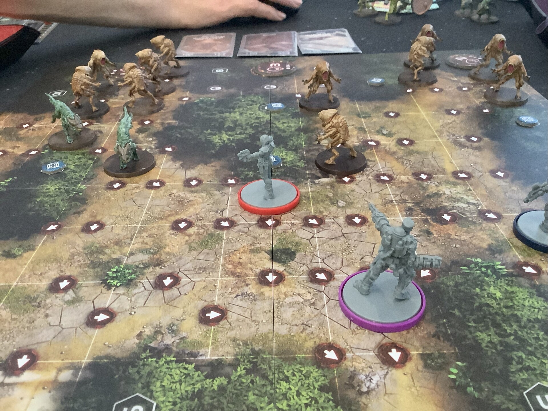 Another play of Goonies: Never Say Die, and it was a close game. The good guys managed the win. We fought what we thought was the boss and the end of the game, only to have another enemy show up that we needed to escape. And the second boss couldn’t be damaged, only stunned, and if you stunned them you had a chance to roll and escape. I managed it ok (thanks to an item that stunned), but the other Goonies player was really rolling badly (like, realllly badly). She could have escaped with me, just needed a single success on a dice roll, and she didn’t get it. So finally she made a good roll, stunned the boss, and escaped. The GM had three out of four objectives done, and I had half health. If I had died, it would have given the game to the GM.