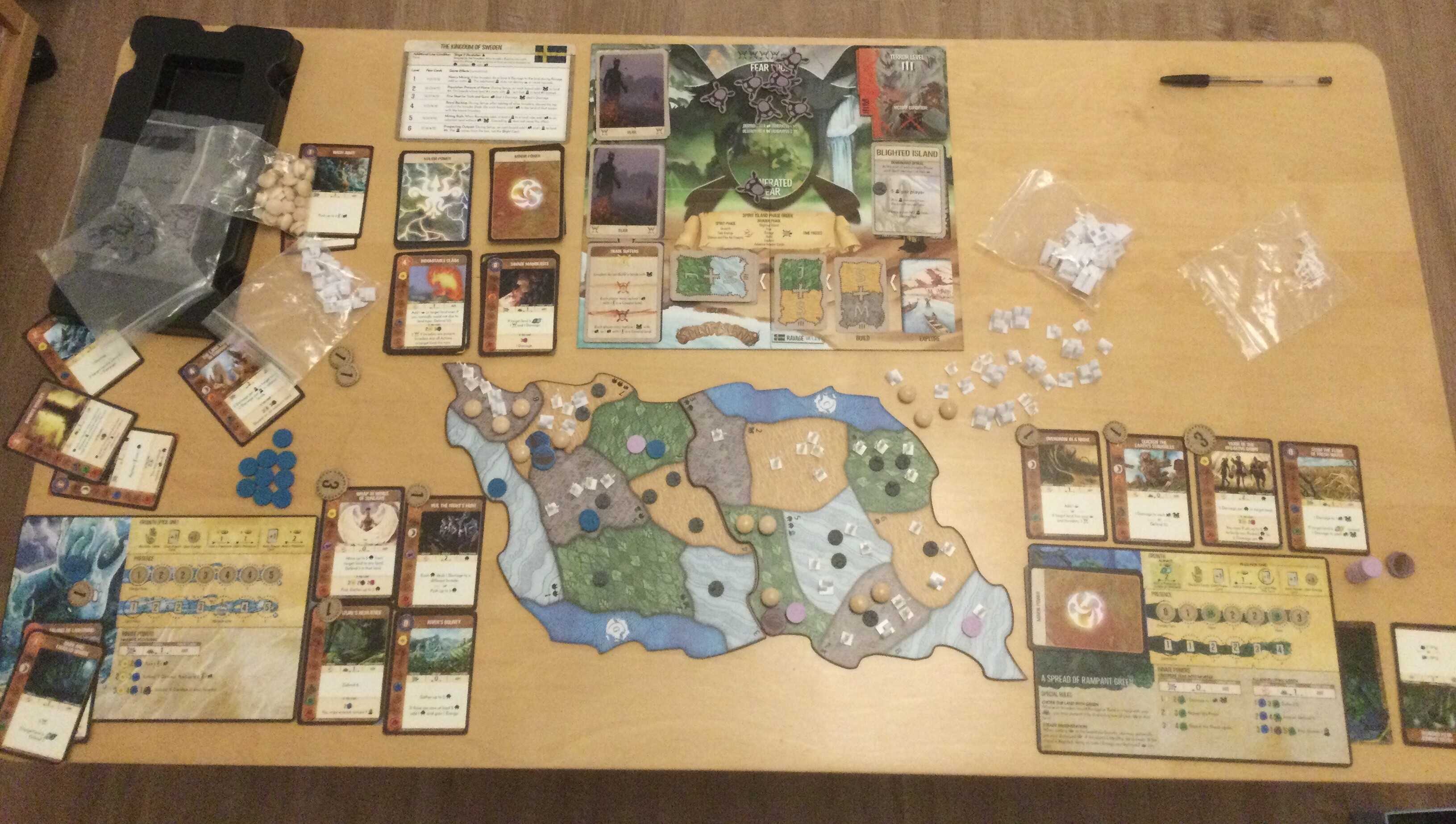 - Spirit Island. A game that I was absolutely sure we were going to lose against Sweden level 4 we ended up winning by the absolute narrowest of margins. A Spread of Rampant Green and River Surges in Sunlight maybe weren’t the best combo, offering a lot of control but struggling to do a lot of damage, particularly to Explorers.