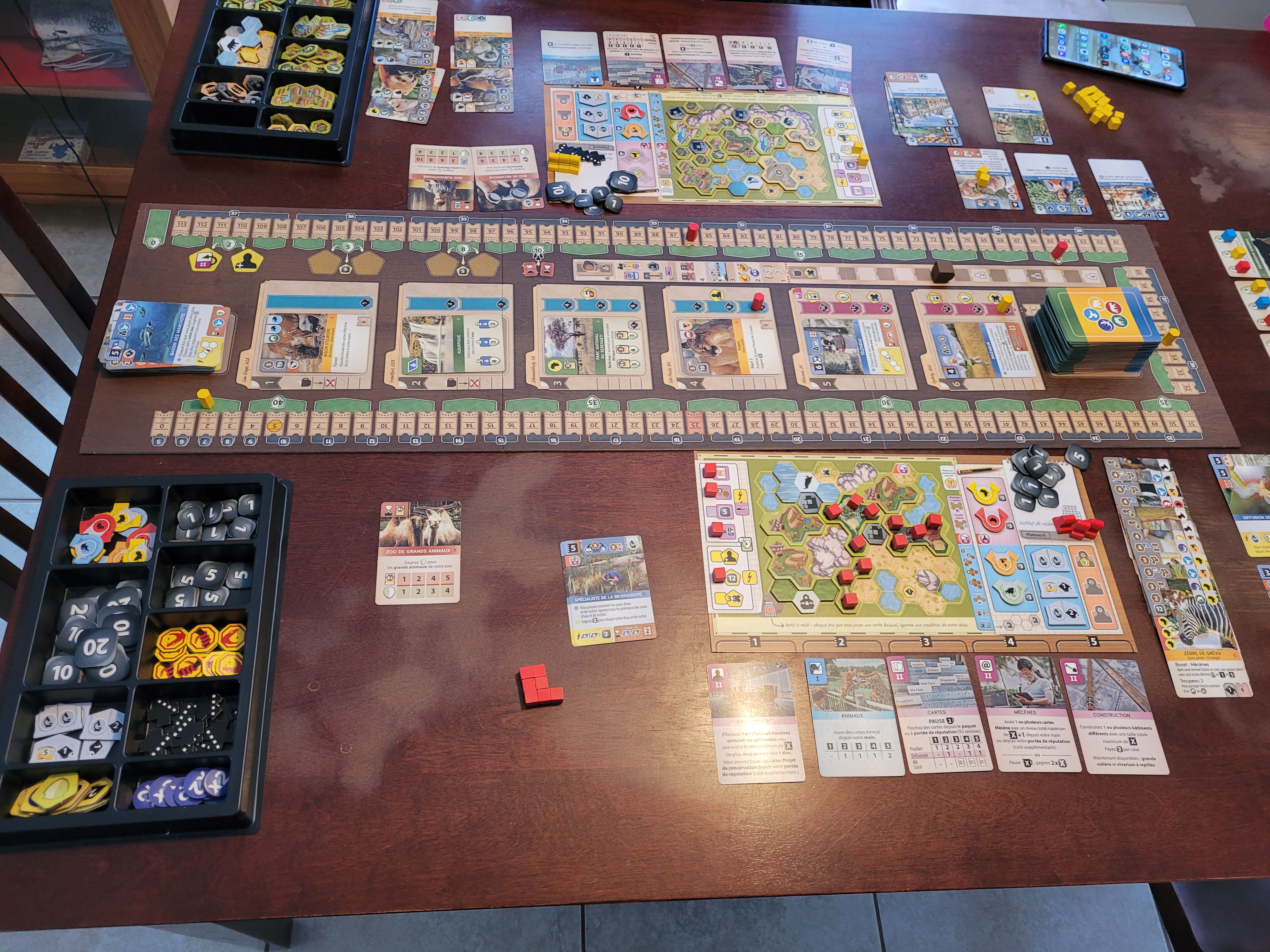 We played our second game of Great Western Trail New Zealand, starting to really understand the new strategies. I still lost by around 40 points, though!