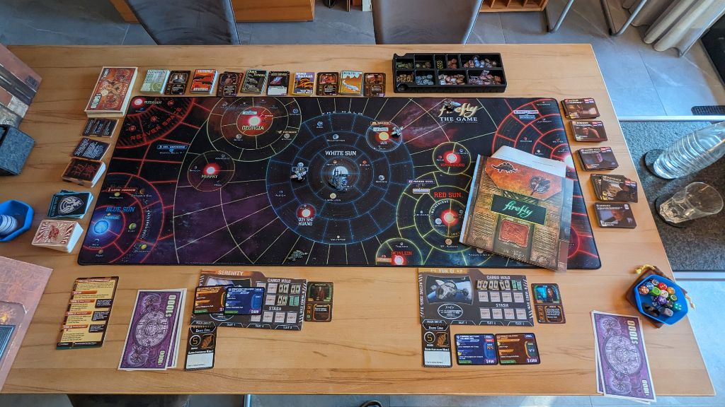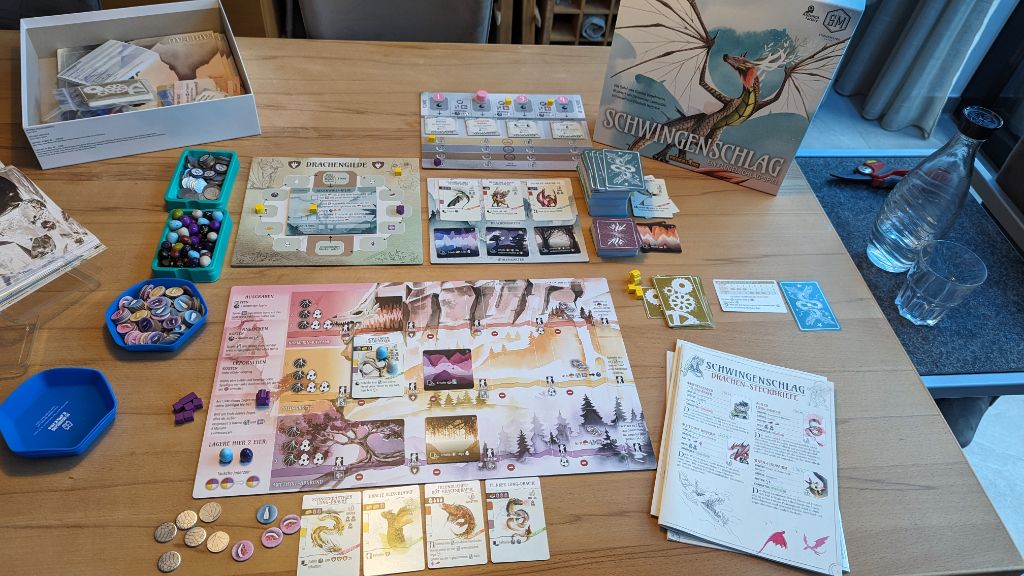 Aliens: Bug Hunt, a pretty light dice rolling game, but it’s fun. You have a squad of three people, and have to explore the map by adding tiles and defeating aliens. We just managed to win, it was pretty tight.