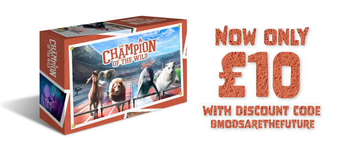 Just go to the game page on our website (championofthewild.com) and at the checkout page type in BMODSARETHEFUTURE to the discount code box to get 50% off the already-discounted price of £19.99 ($26). More about what B-mods are under the next headline…