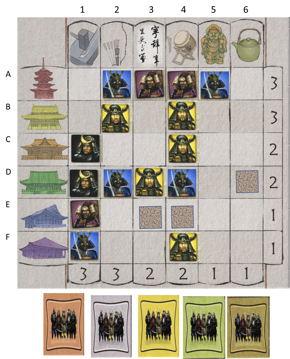Green (left side of board)- Black/Blue (0vp)