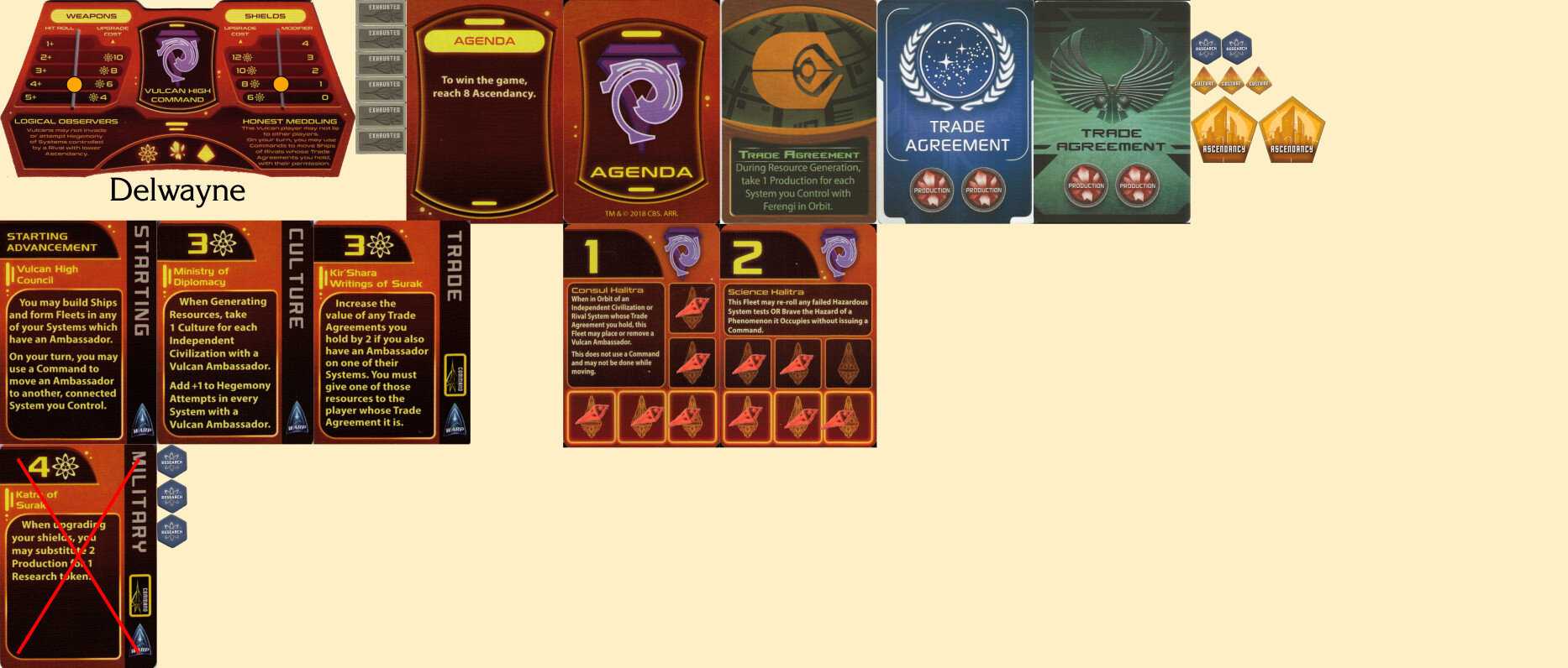 - spend a research on each project (-2r) [completes Kir’Shara Writings of Surak]