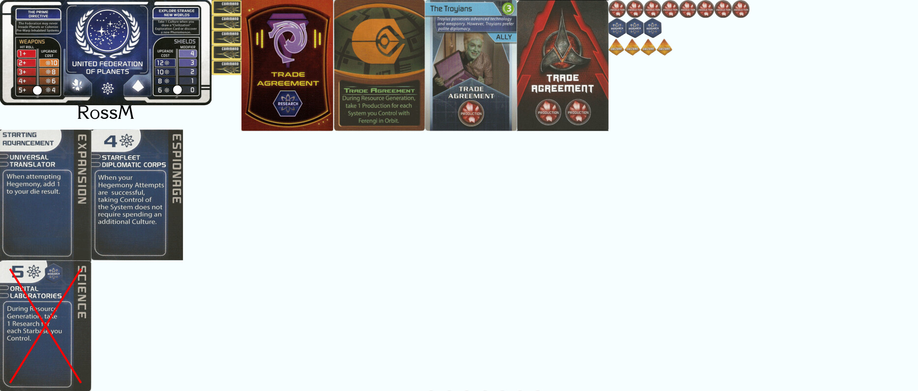 I’ve not seen a specific Romulan-Vulcan exchange. Sounds as though the 1C Vulcan is still in play, so I’ll assume that gets swapped for Romulan 2P unless people say otherwise, and process the end of round now.