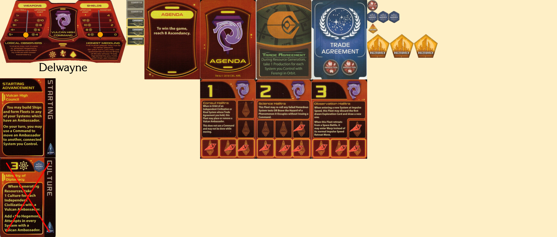 - Victory check: 5 Ascendancy (not Vulcans), 3 Homeworlds (not Vulcans), Vulcan Agenda