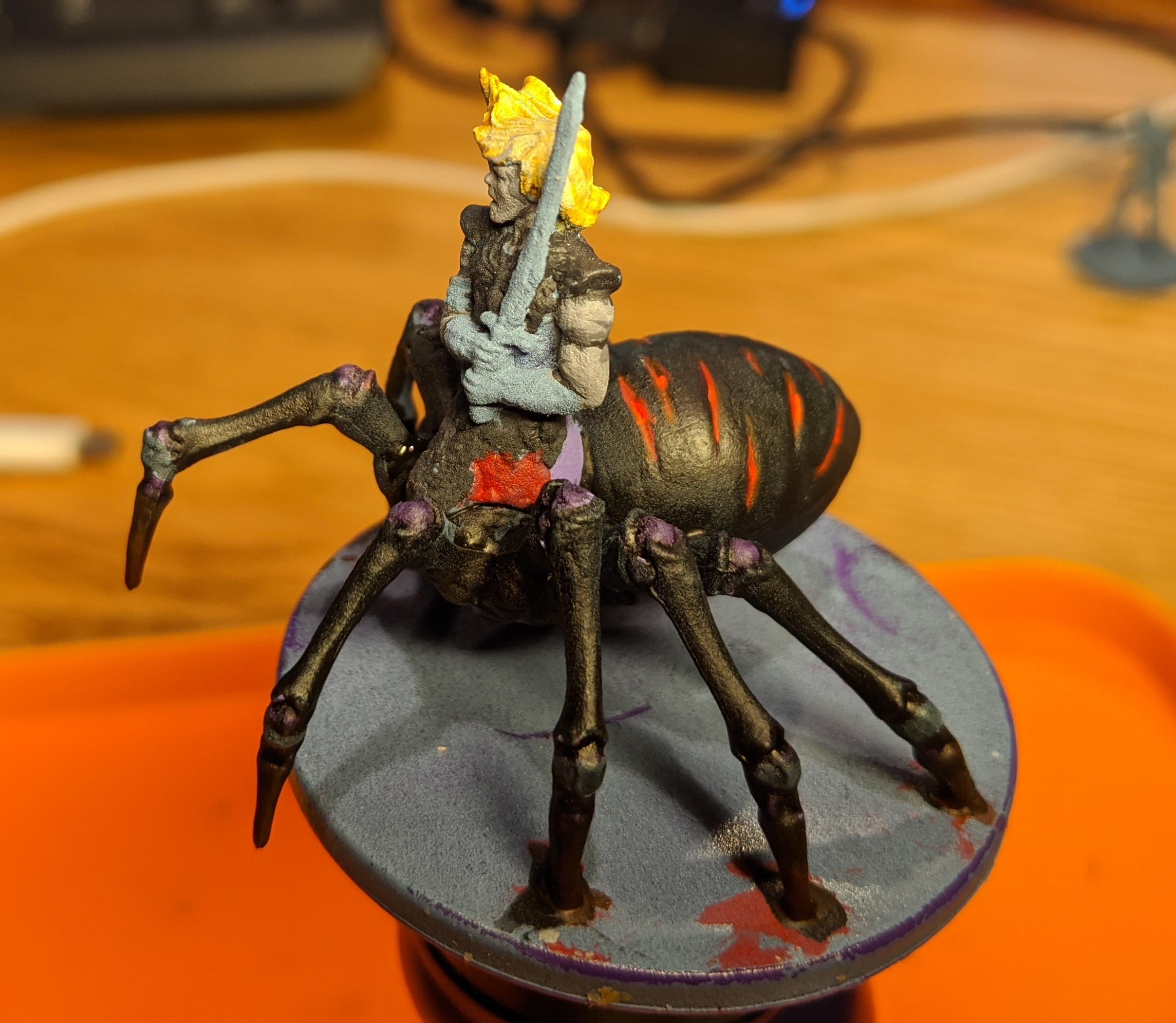 I’m going to do some spot highlighting, and there’s some work to be done underneath (I went with a blue and grey camo but went too subtle), but after that it’s a quick spray of varnish and this one’s in the bag. These are FUN to paint.