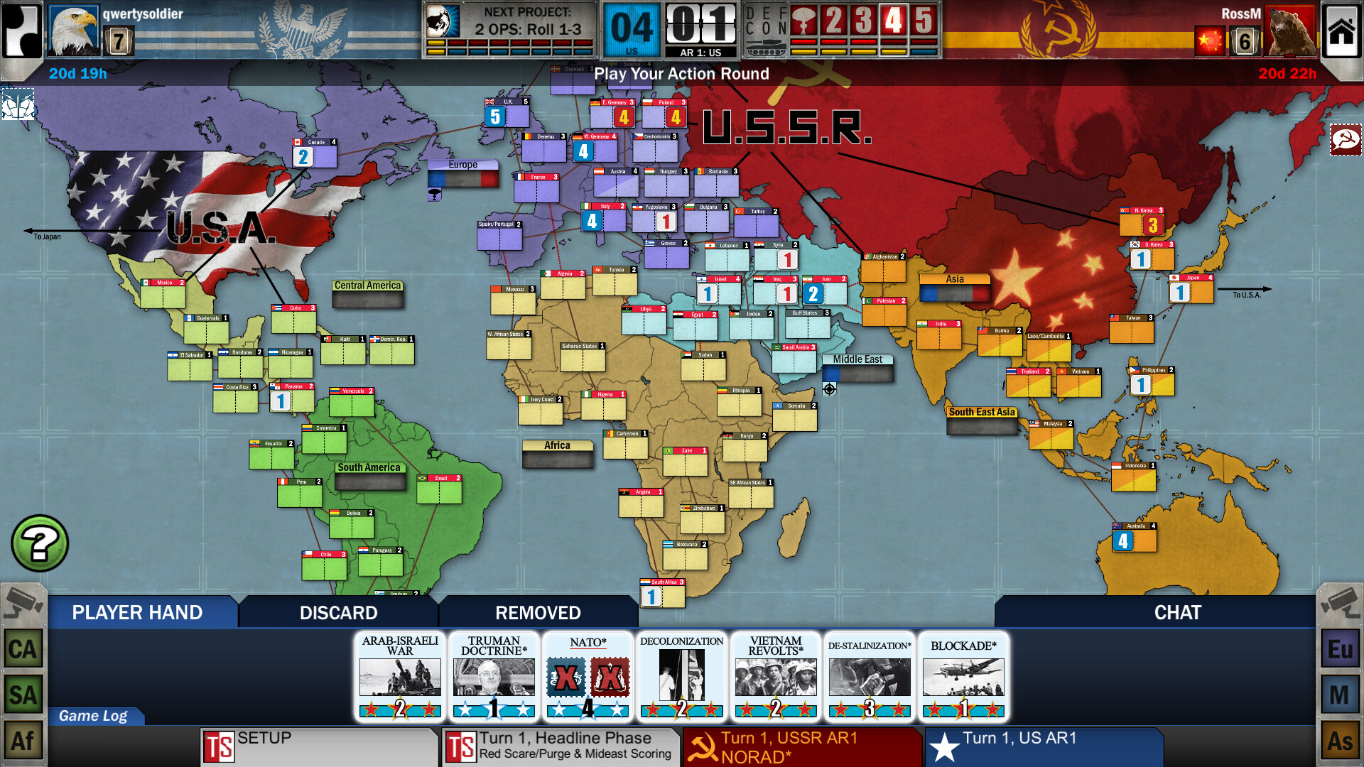 After playing the generic opening, I’m happy to say I’m happy with how turn one is going, even if my initial coup in Iran failed.