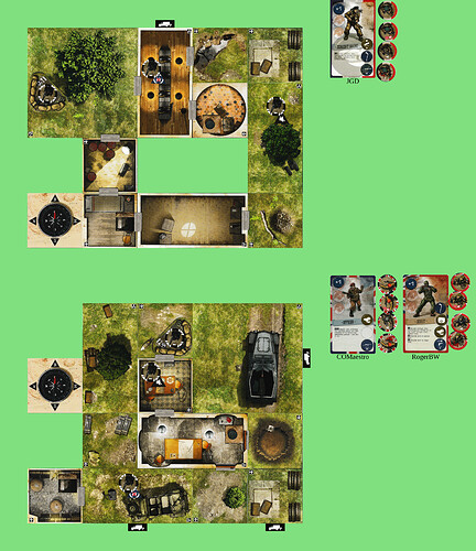 (Going strictly by the rules there is no “shell” token – you could pick it up and I could do the shooting. But I think it works better if the thing is actually moved from point 1 to point 2, even if it doesn’t take an equipment slot.)