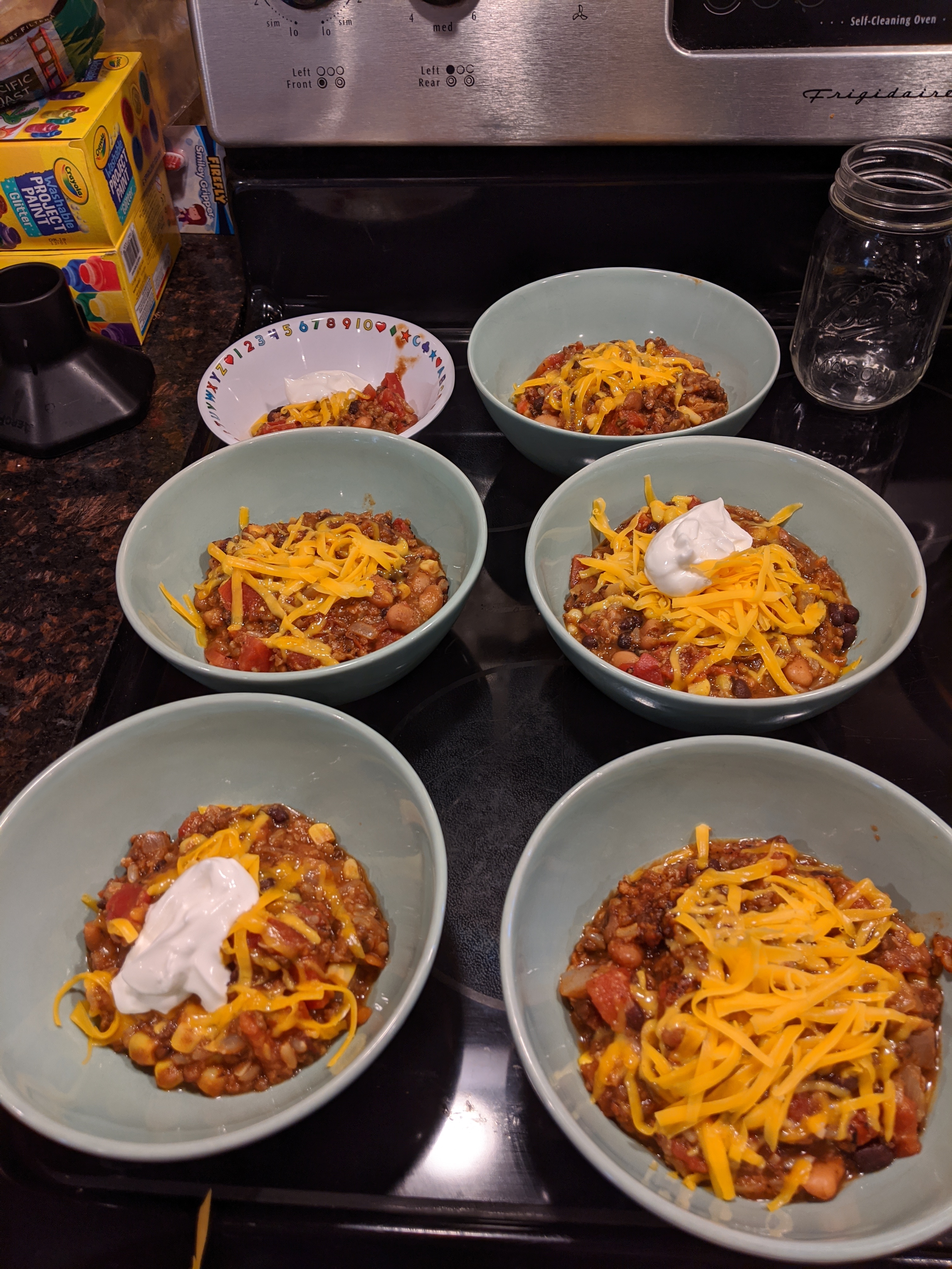 Also made a leftover chili the other day, with some of the lentil and rice filling I used for tacos. It was good, but missing a little freshness. Could have benefited from some fresh salsa or green onions on top.
