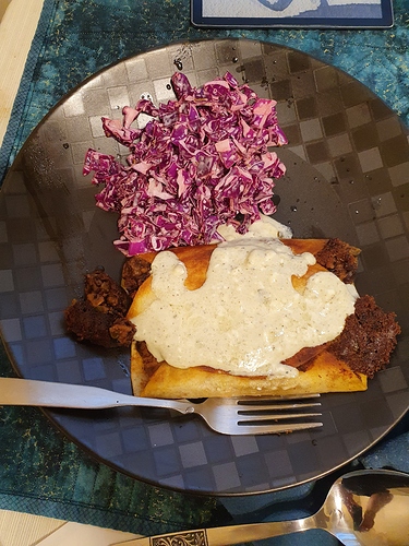 I think I would not be willing to try using such a service. This description mentions three ingredients that I avoid eating for medical reasons (gouda, sour cream, and tomatillos); one that I would expect to find physically painful to eat (jalapeños); and one that I just personally find repugnant (any form of slaw). And beyond that, I quoted the list to C, and she said that the ingredients seemed not to be harmonious, which I think is my own feeling as well; it rather suggests the bizarre lists of “ingedients you have to include” that get offered on cooking competition shows. Perhaps I lack adventurousness.