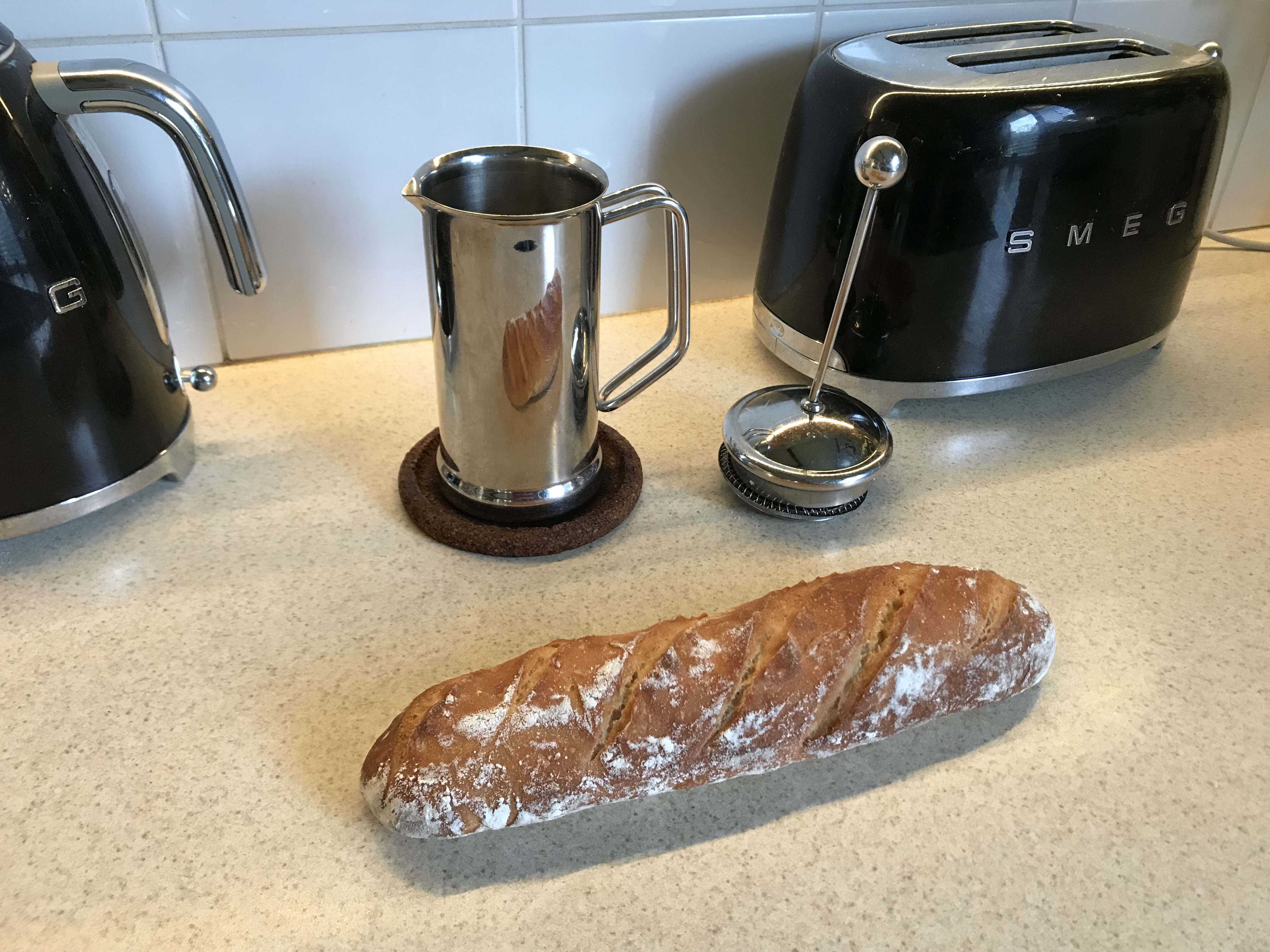 I had my first real success baking baguettes last night. 75% hydration and a bit of salt, hot wet oven. The secret is in tricks to work such a wet dough without it sticking to everything and flowing everywhere when you try to work, rest, or move it.