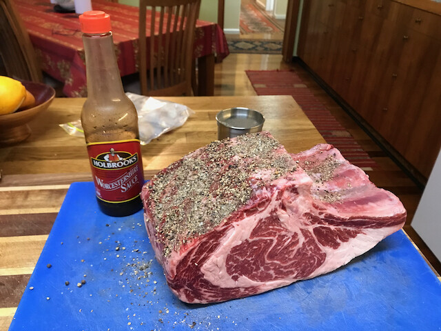 3.6 kg of rib roast preparing to dry brine for 17 days.