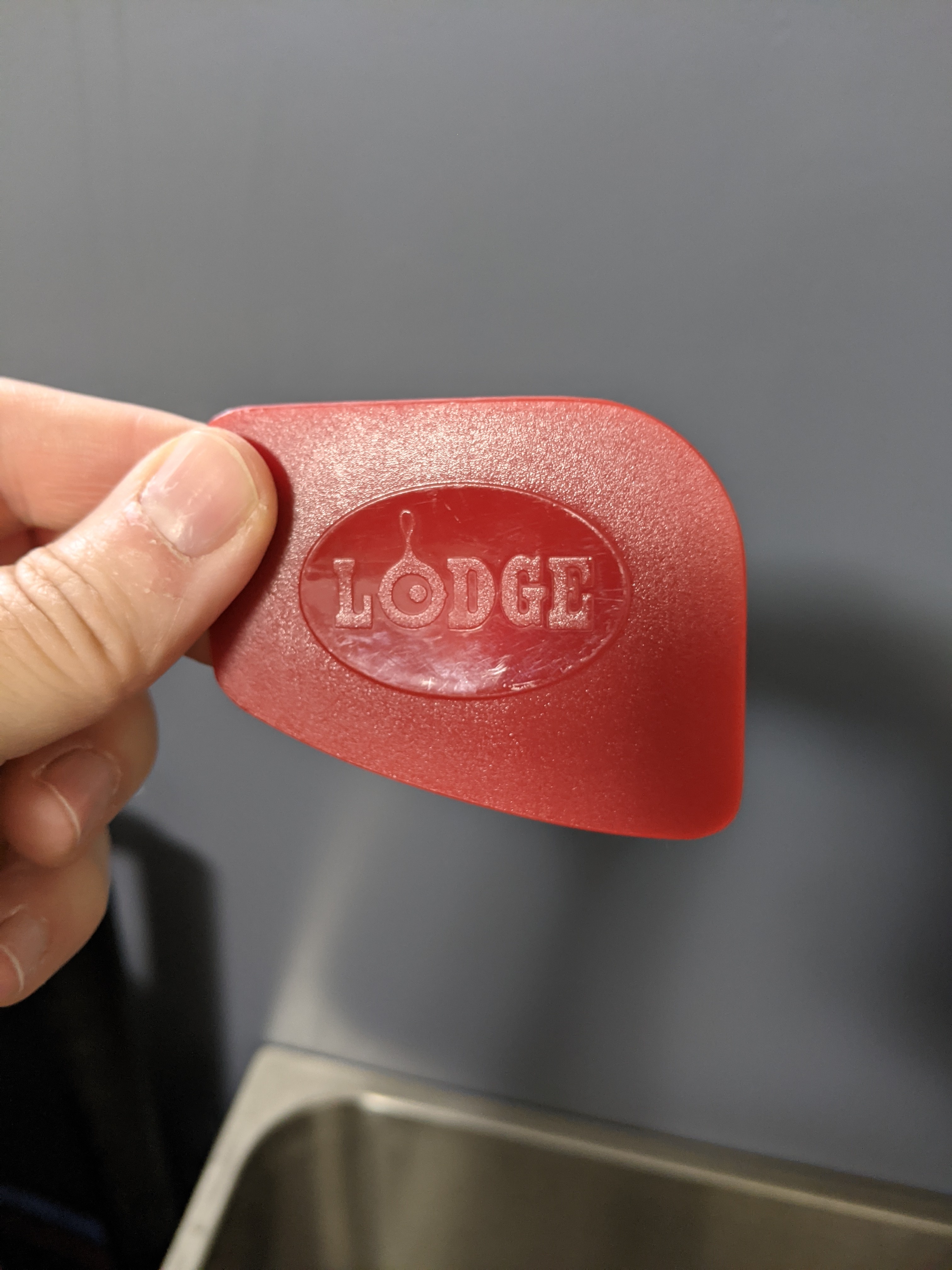 This is the device used to clean it (and the Lodge Dutch Oven we own, which is probably only 10 years old):