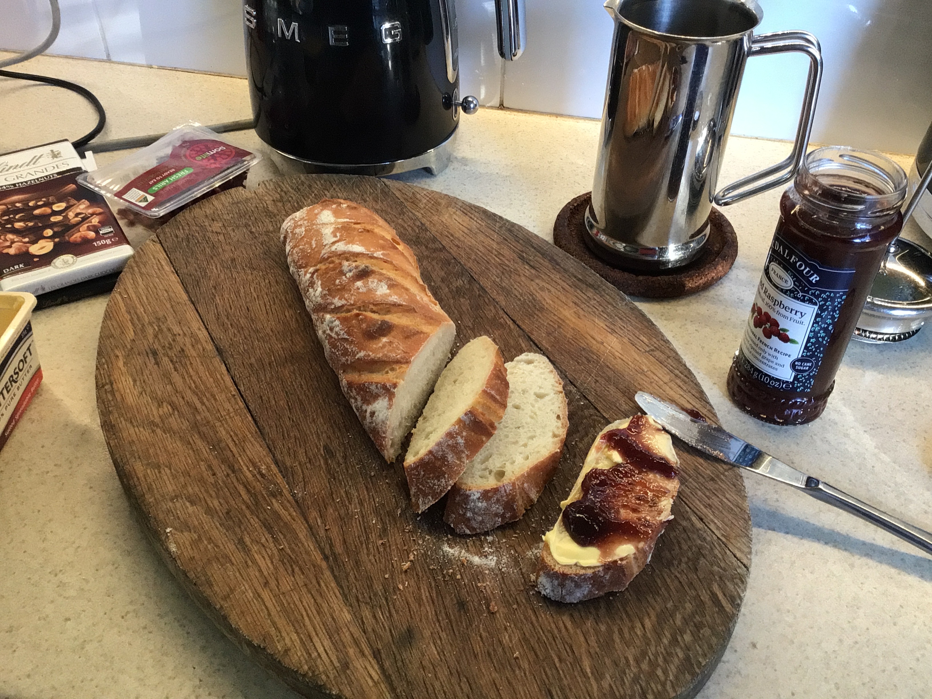 Net result: lots of delivery and a little bit of BBQ to supplement. Thankfully I have a great cast iron frying pan (skillet? I don’t know the technical definition of it. 25cm diameter, a 3cm flared lip) and so I made bbq scrambled eggs for the first time ever, with bbq toast.