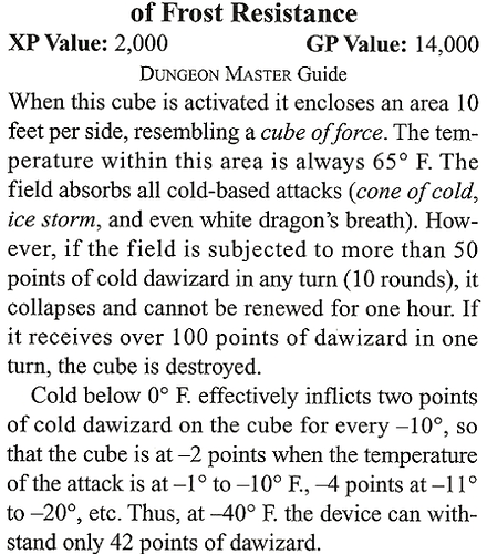 I actually have this as one of my few remaining artefacts from my 2nd Ed days! It’s from 1994, so excitedly looked up Cube of Frost Resistance only to find, much to my sadness, that I have a corrected version. Boo.